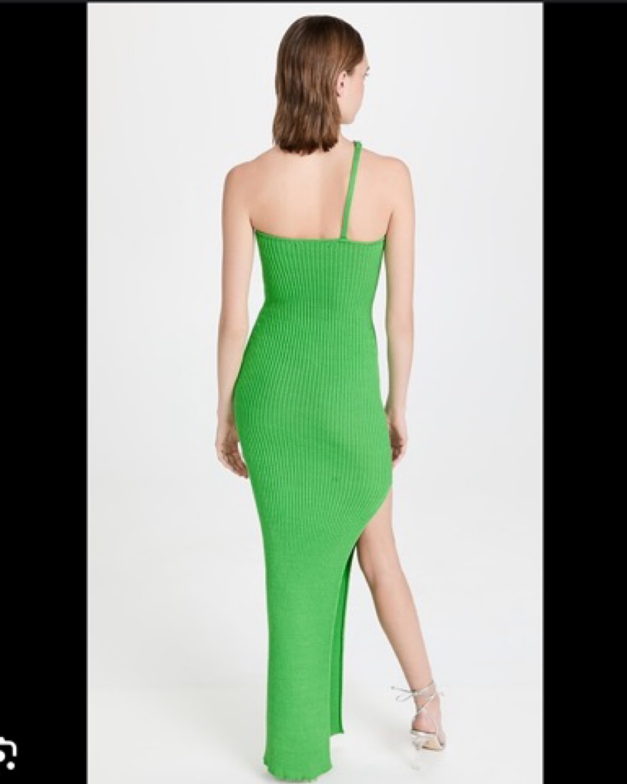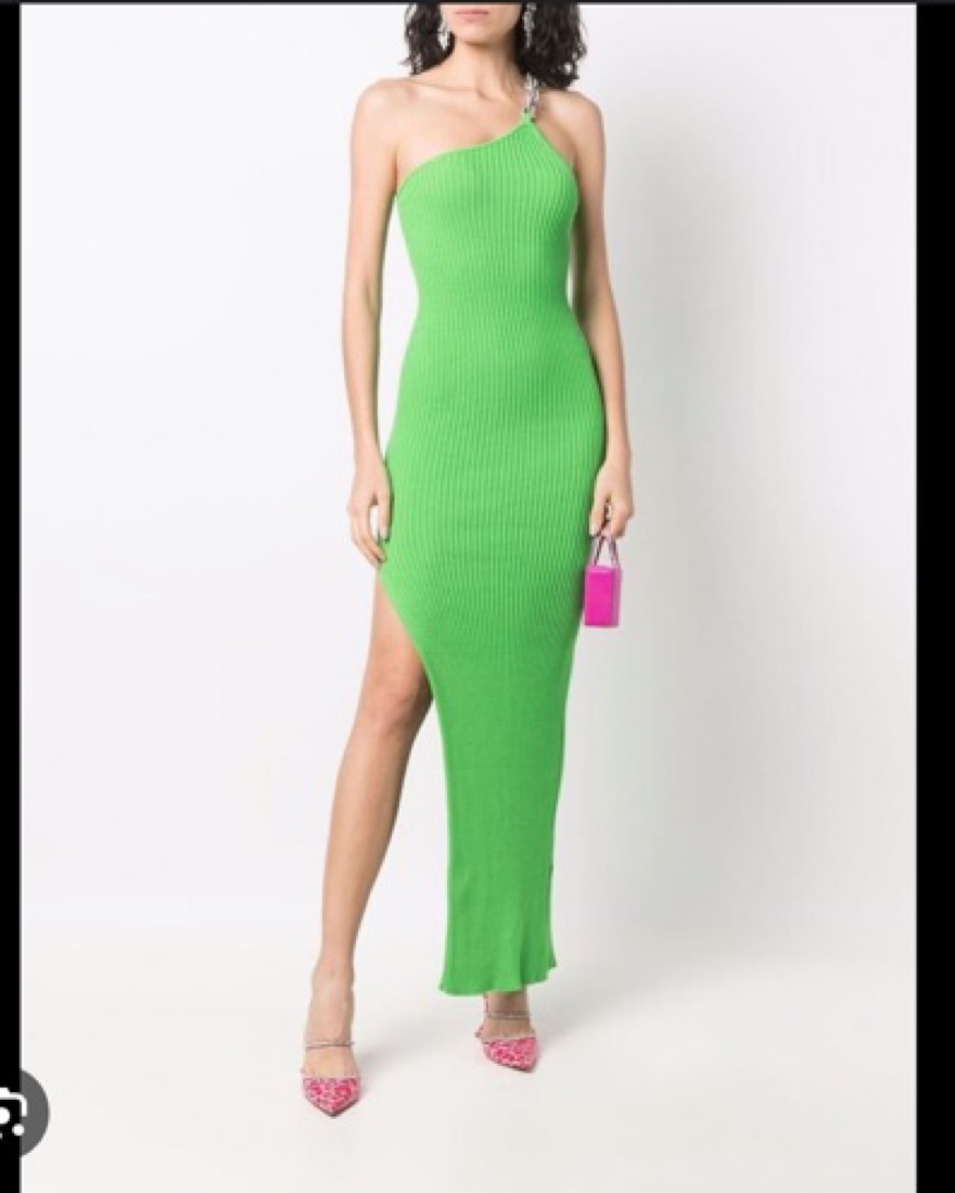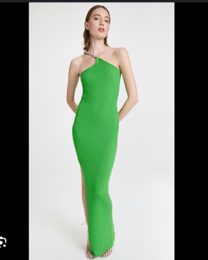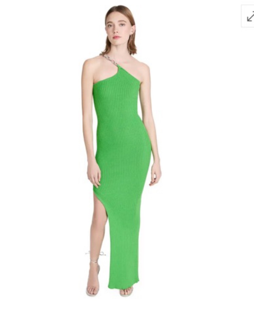 Fabric: Mia-weight ribbed knitThigh-high side slitOne-shoulder chain neckline with removable linksShell: 100% cottonUnlinedDry cleanMade in Italy Measurements Measurements from size 36 Length: 63.75in / 162cm, from shoulder. Can fit sizes xs - m