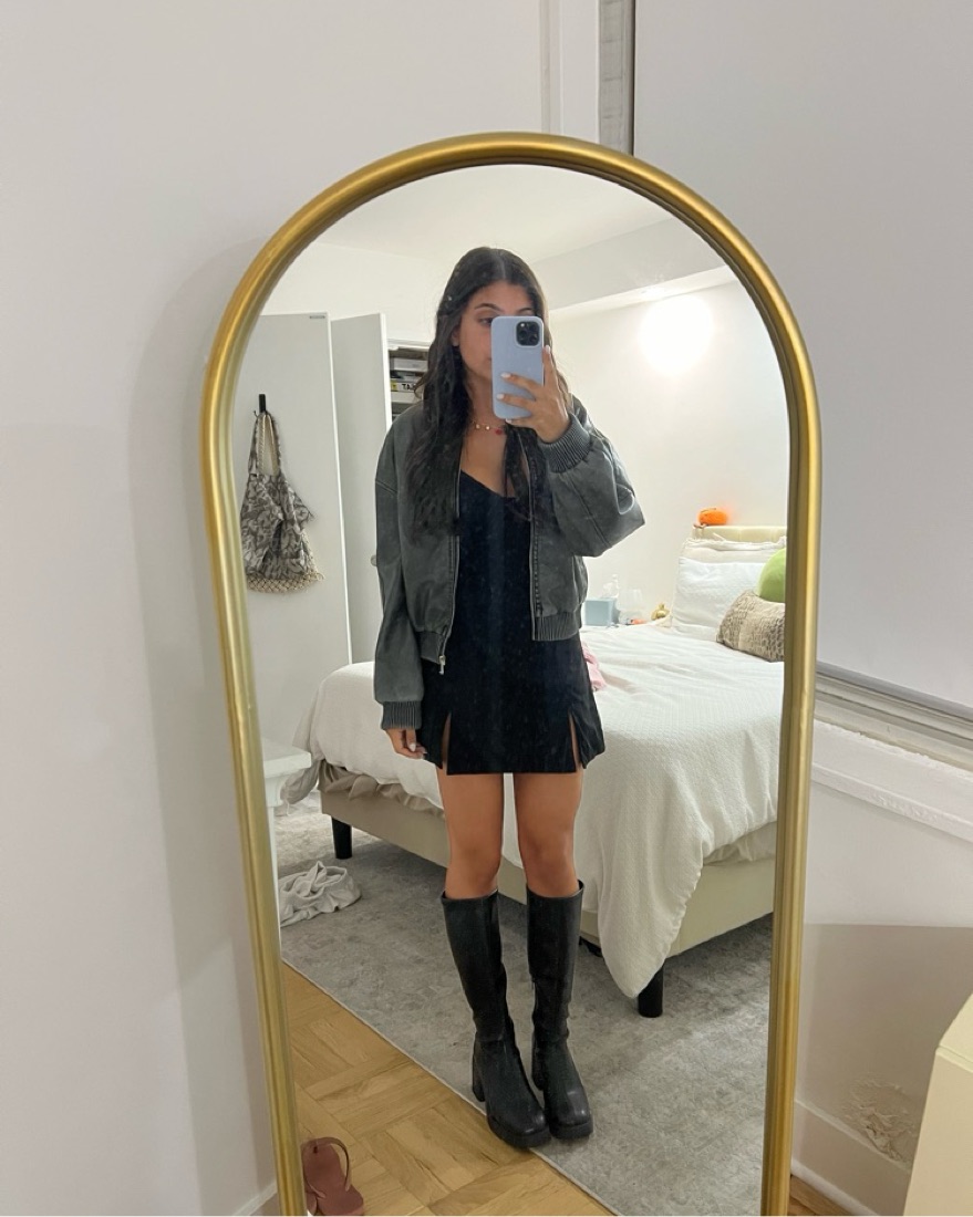 Greyish faux leather bomber