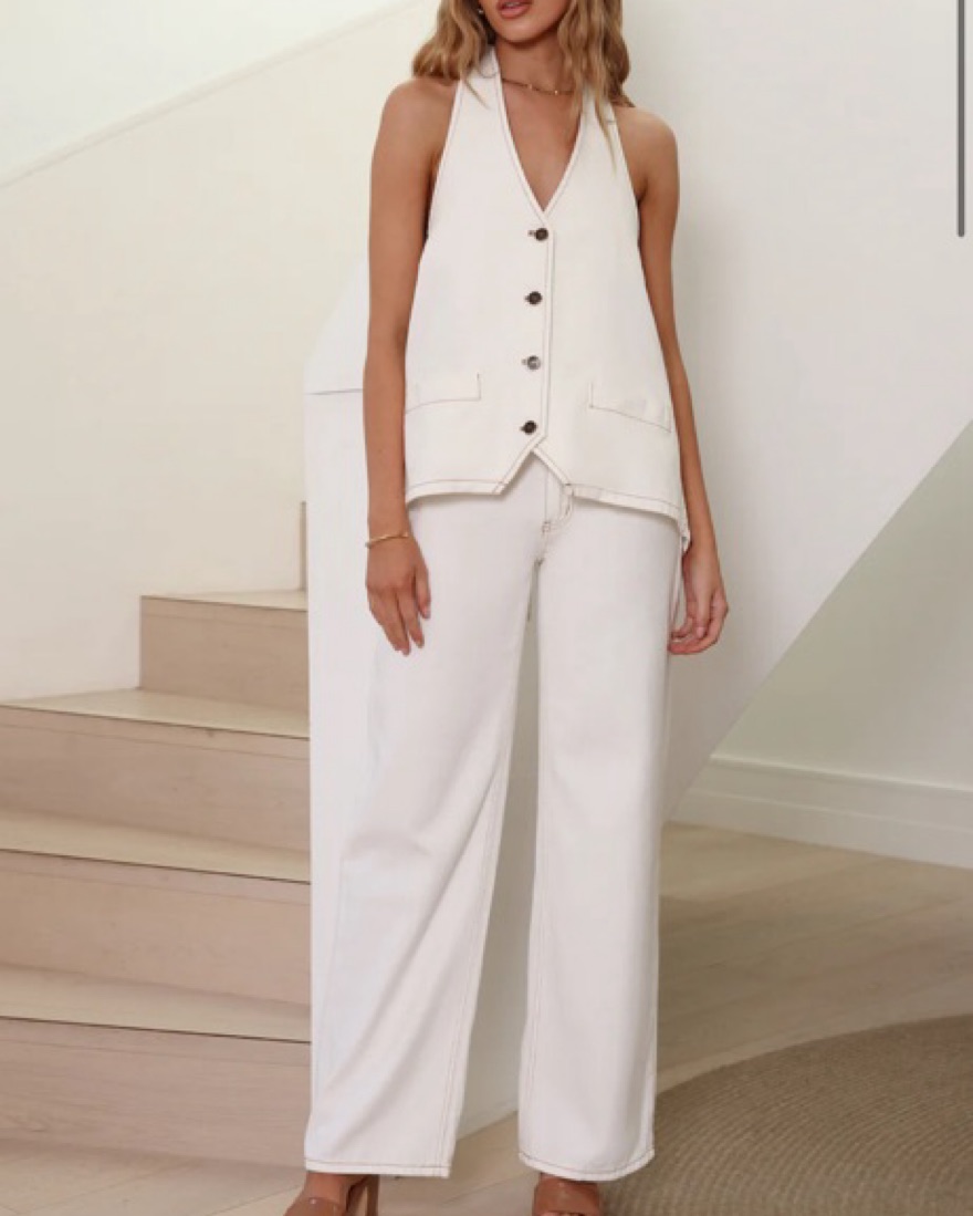 Lioness Halter Top And Jeans Set by Lioness - Pickle