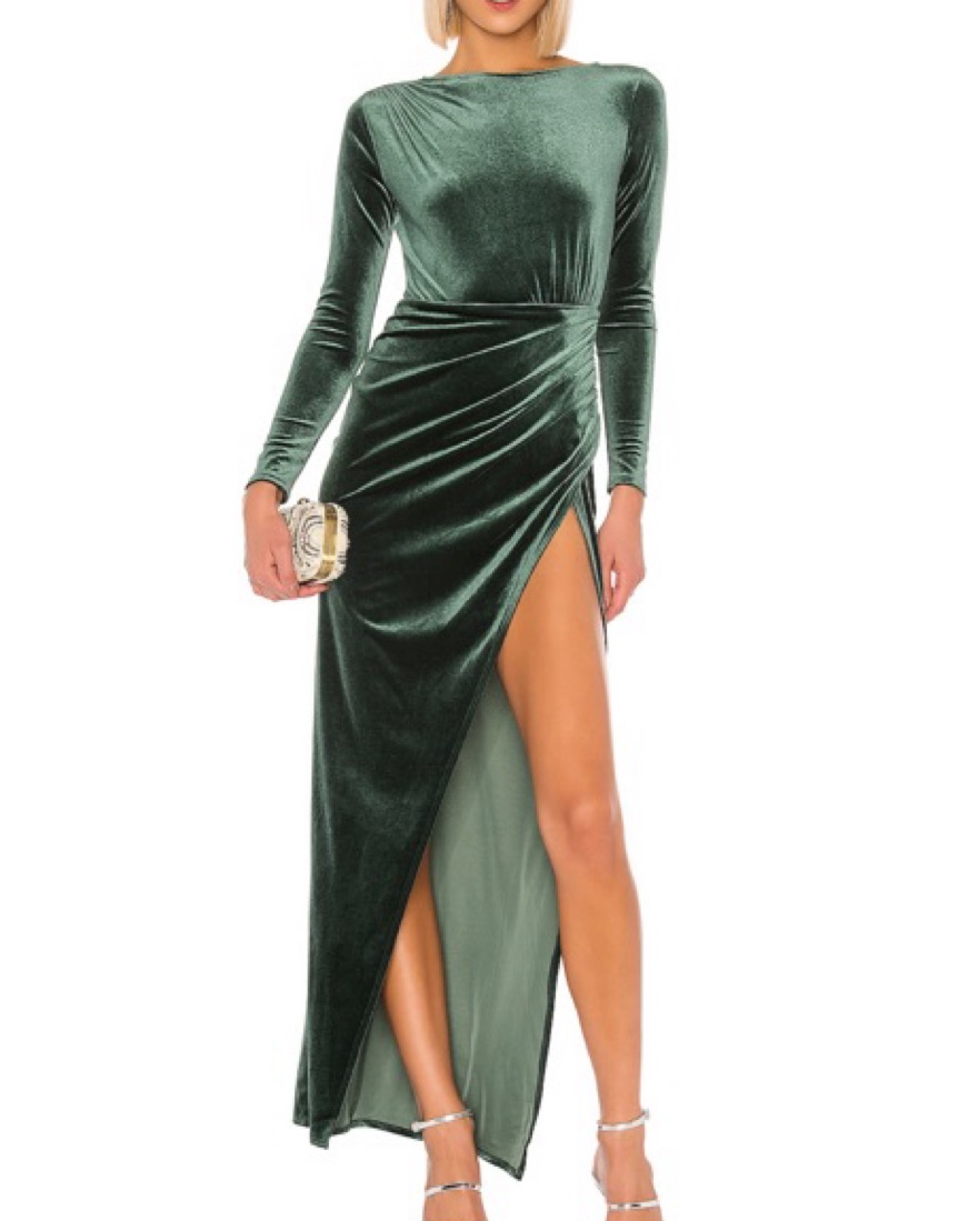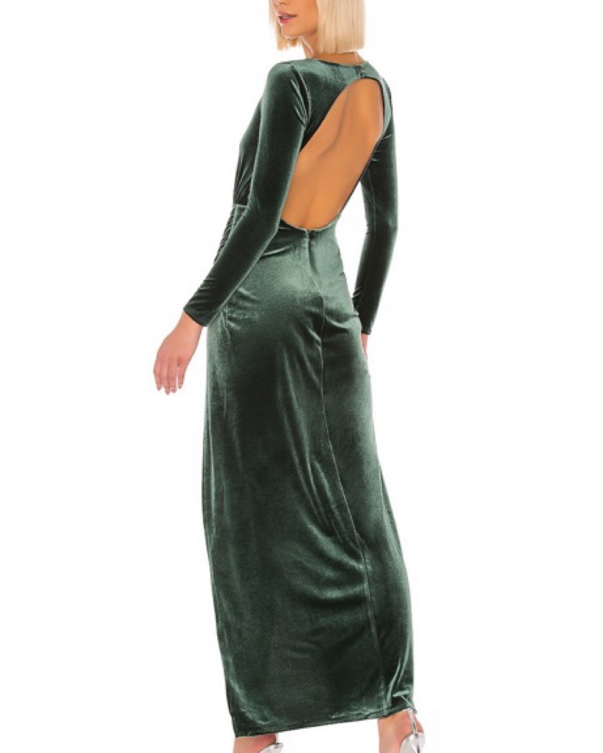 Michael Costello long sleeve velvet gown with open back and side slit, has built in bosysuit - i usually wear a small it fits perfectly