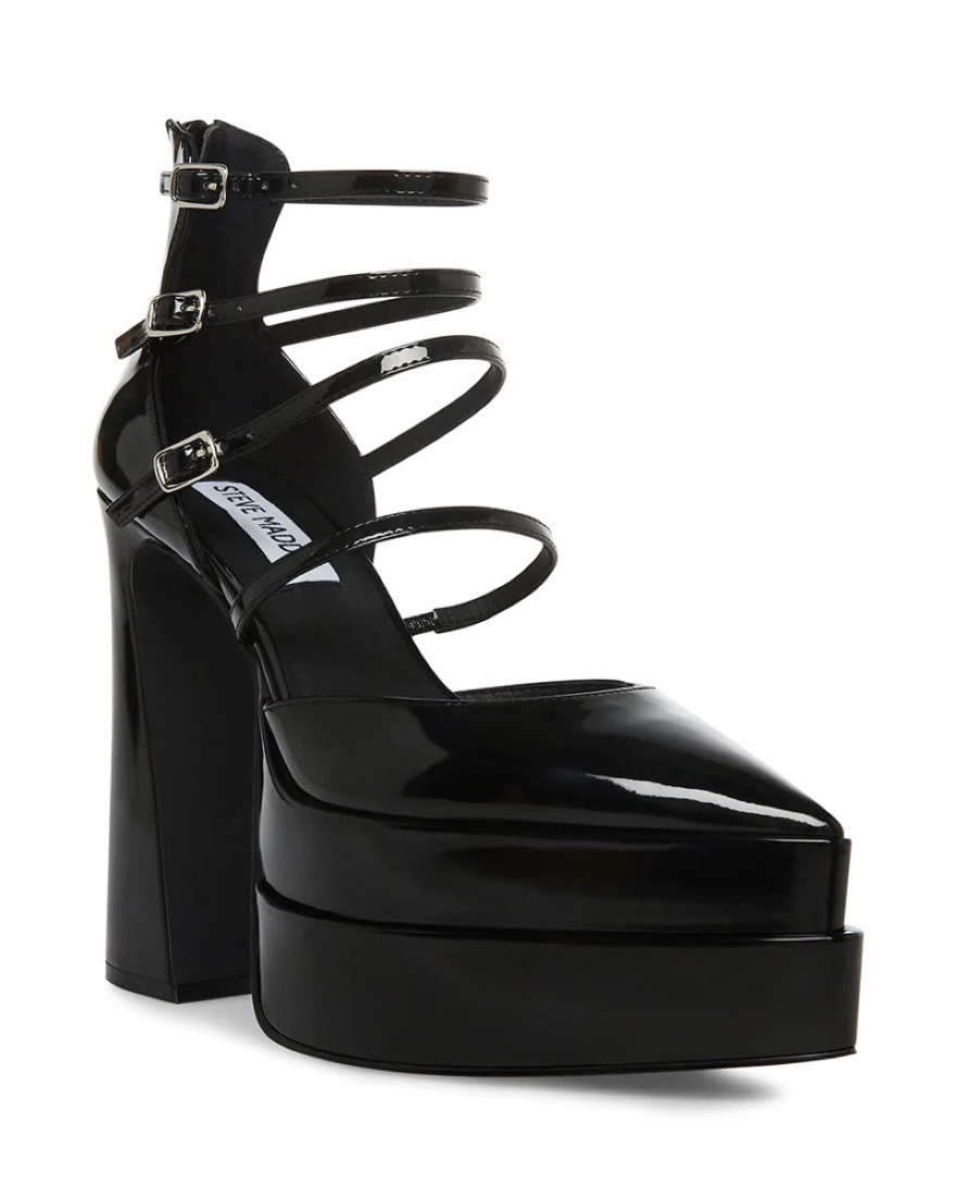 Brand new The CLARA point toe d'orsay pumps balance an extra high heel with a graduated stacked platform toe and four front straps to keep them secure on your feet.