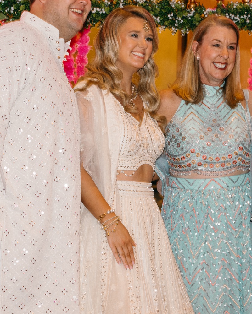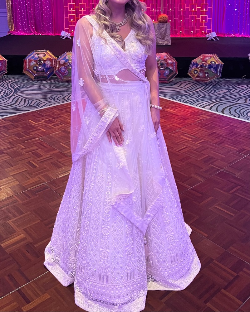 Wore this for my Sangeet! I’m 5’9 and the length was perfect with heels. I didn’t have to alter this at all. The top clasps in the back which is SUPER comfortable and the back is a mesh clear beading which is stunning. All around I LOVED this look!!!