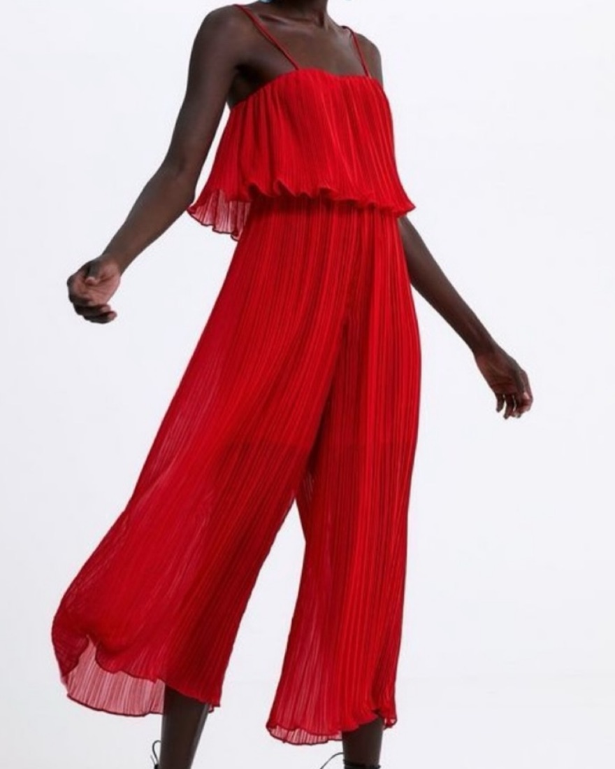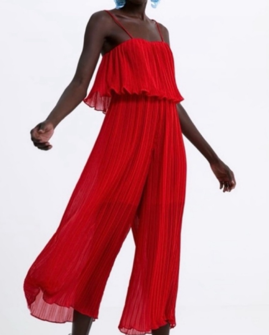 Zara Red Pleated Jumpsuit by Zara - Pickle