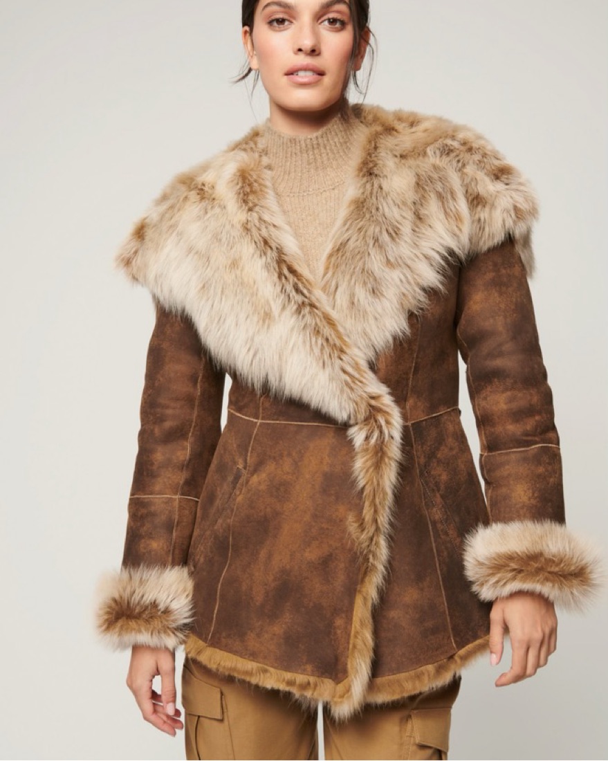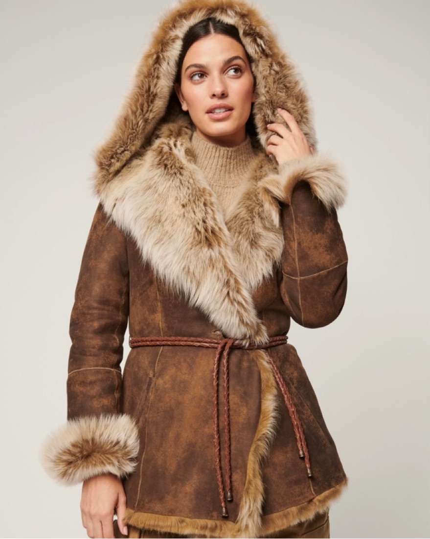 • Spanish Toscana sheepskin • 2-button closure • Removable braided leather belt • 2 outer slash pockets Good condition