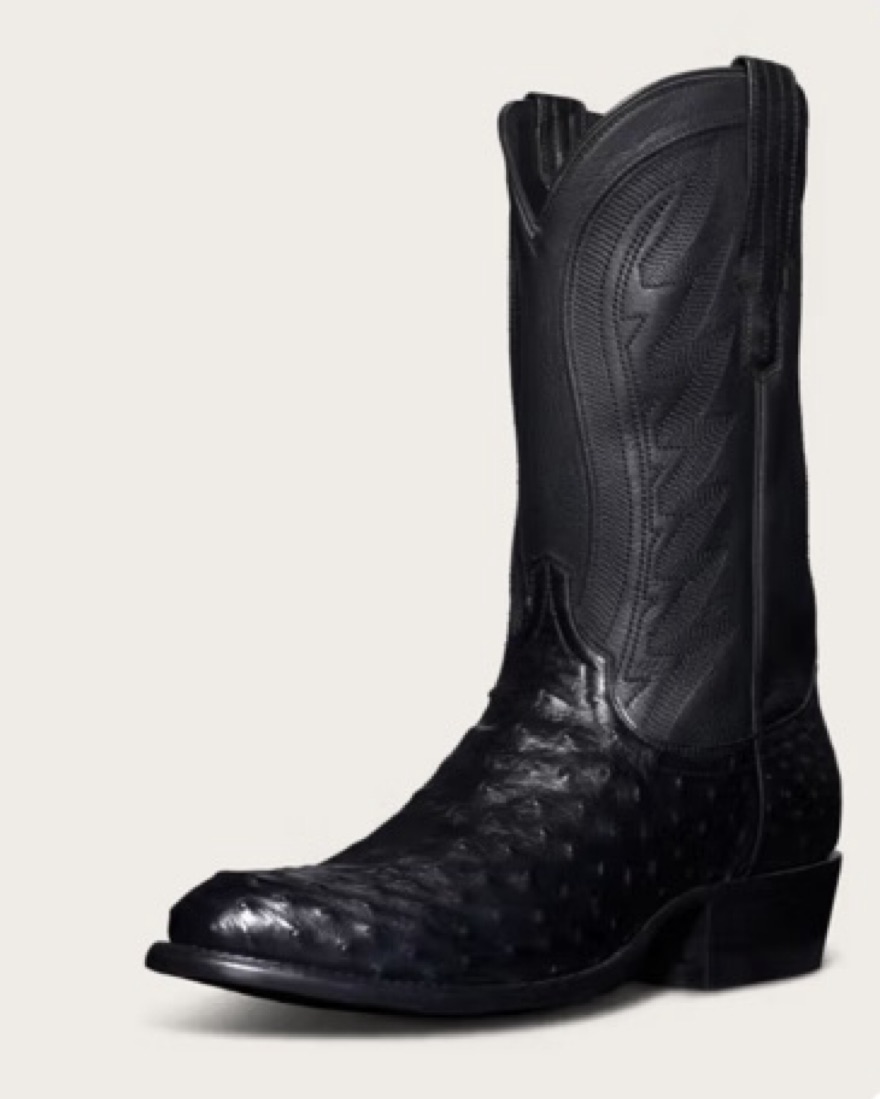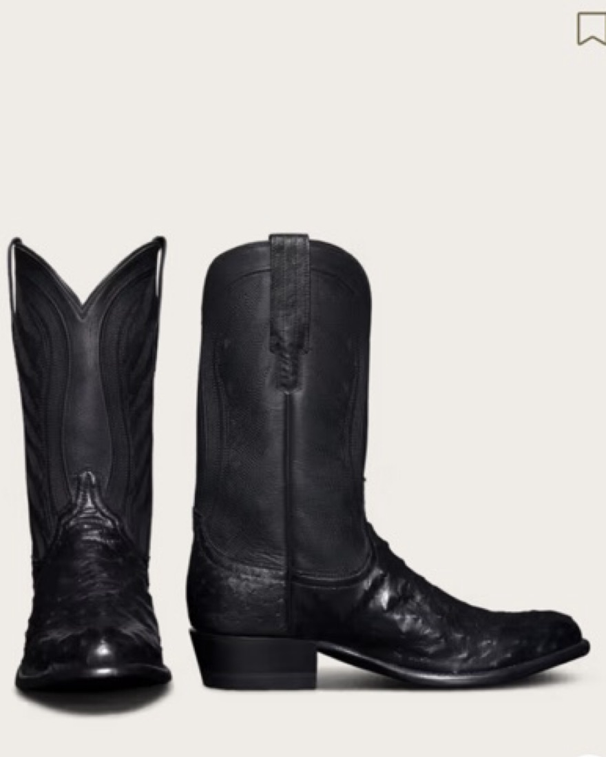 Ostrich leather black cowboy boots