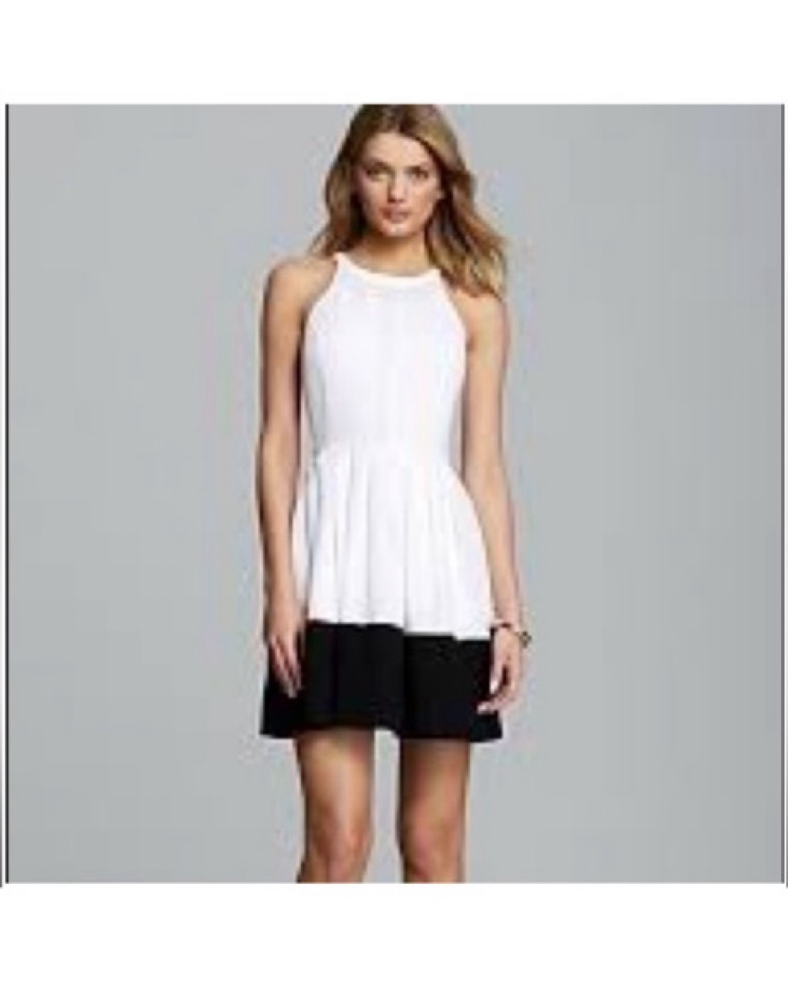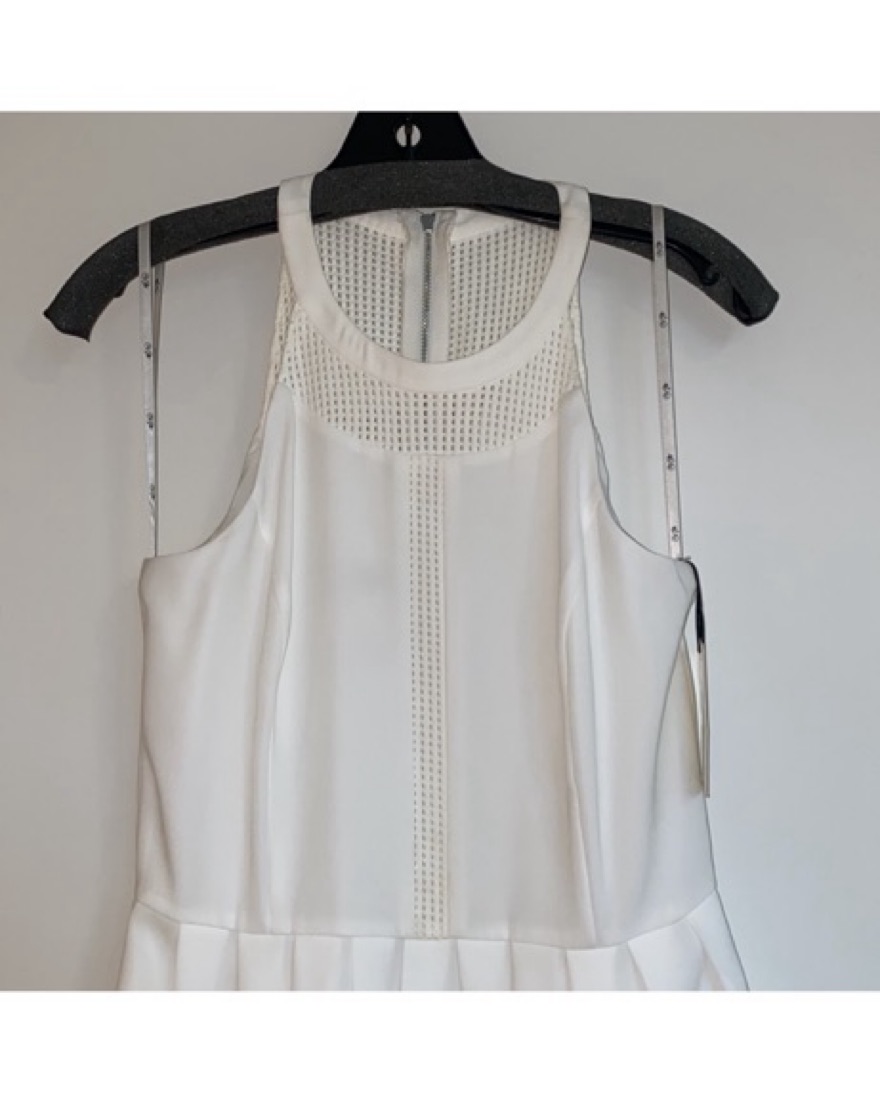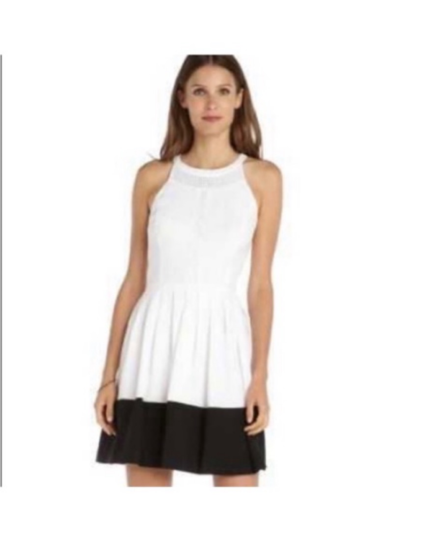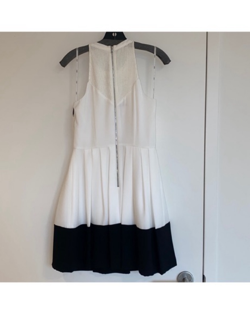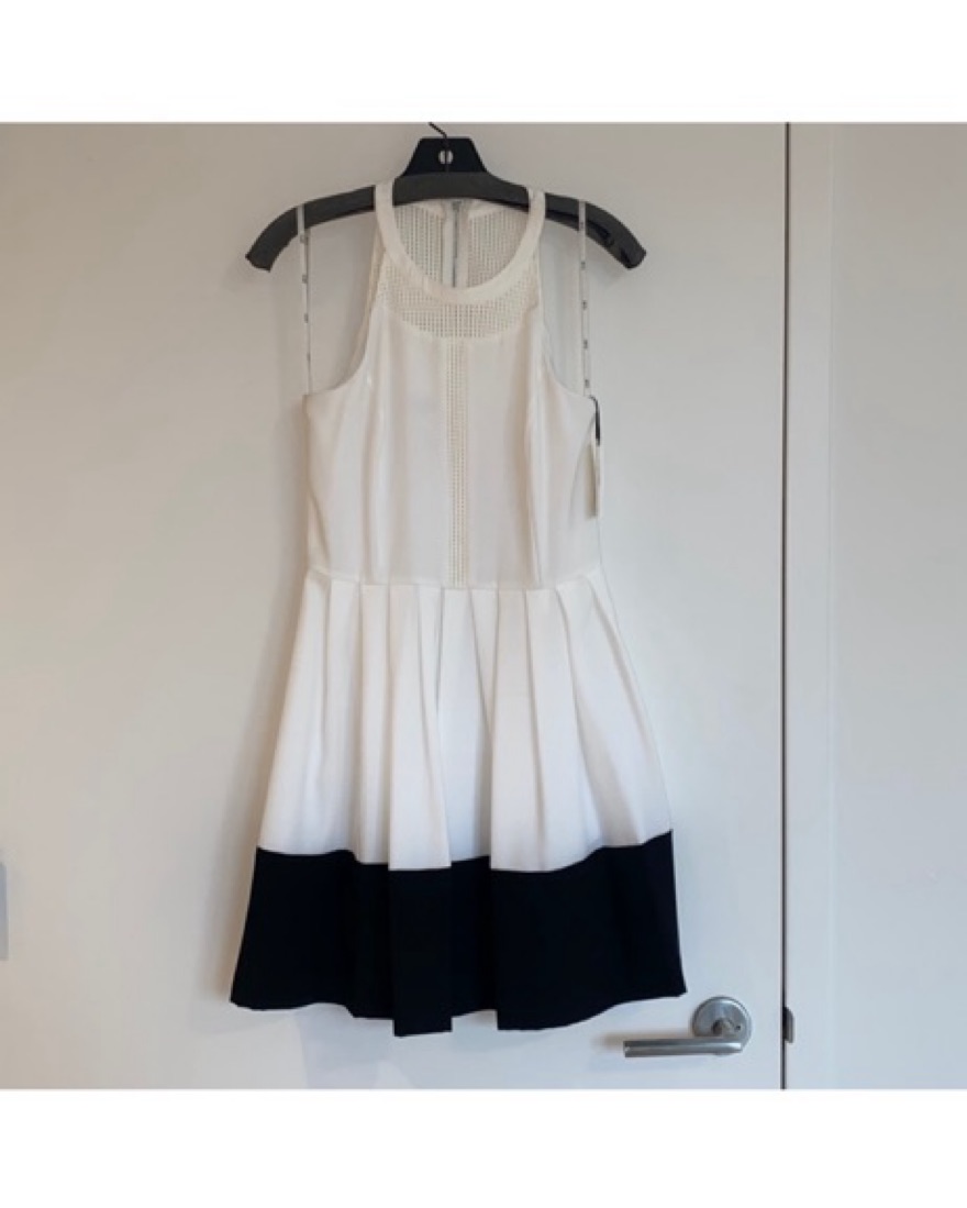 NWT Ali Ro White Dress Mesh Detail and bottom Black Trim Lined Size 4 Excellent Condition, Purchased from Saks, will ship with original hanger and Saks plastic garment bag