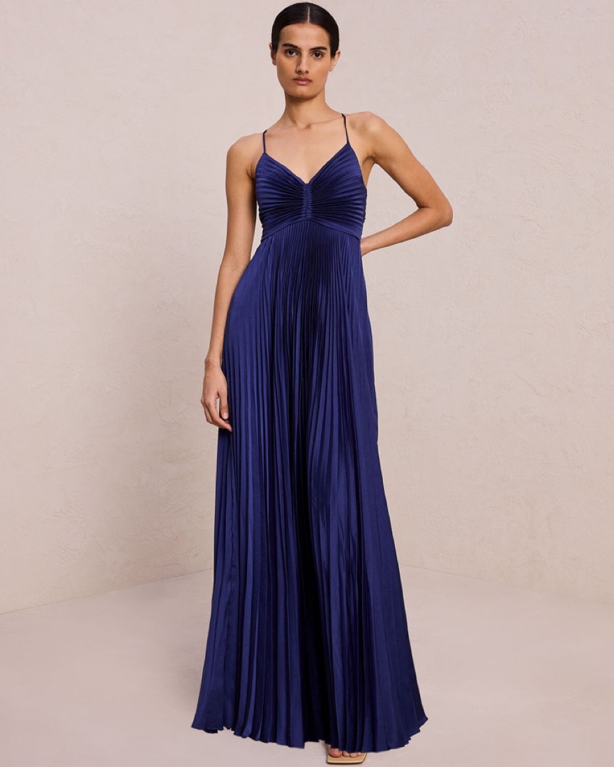 ALC Aries Satin Pleated Dress in Riviera Blue - such a flattering dress! Only worn once for a wedding.