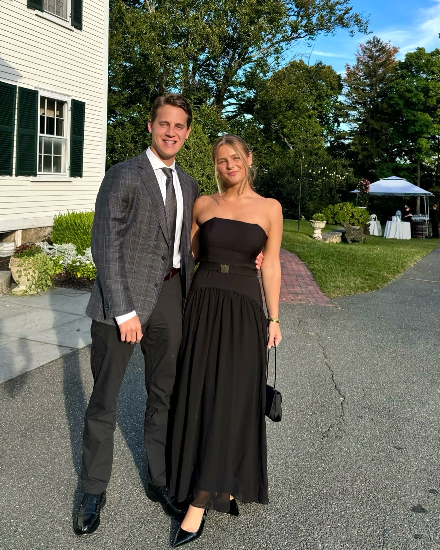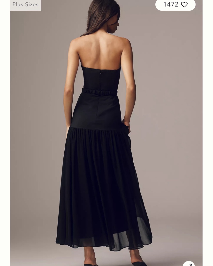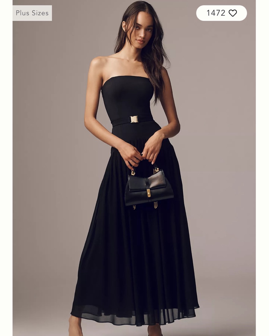 Timeless strapless black gown/long dress with drop waist & detachable belt. Worn once to a wedding! Size 4P