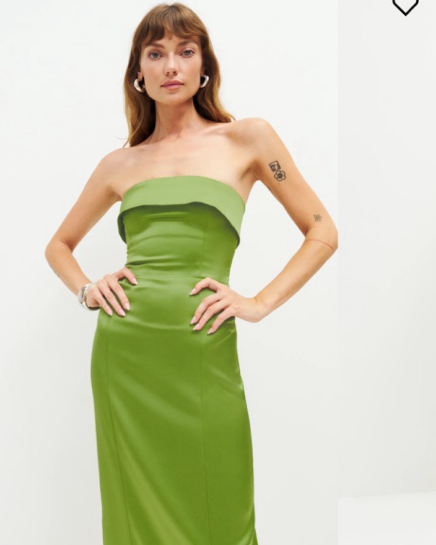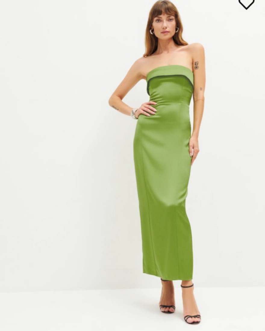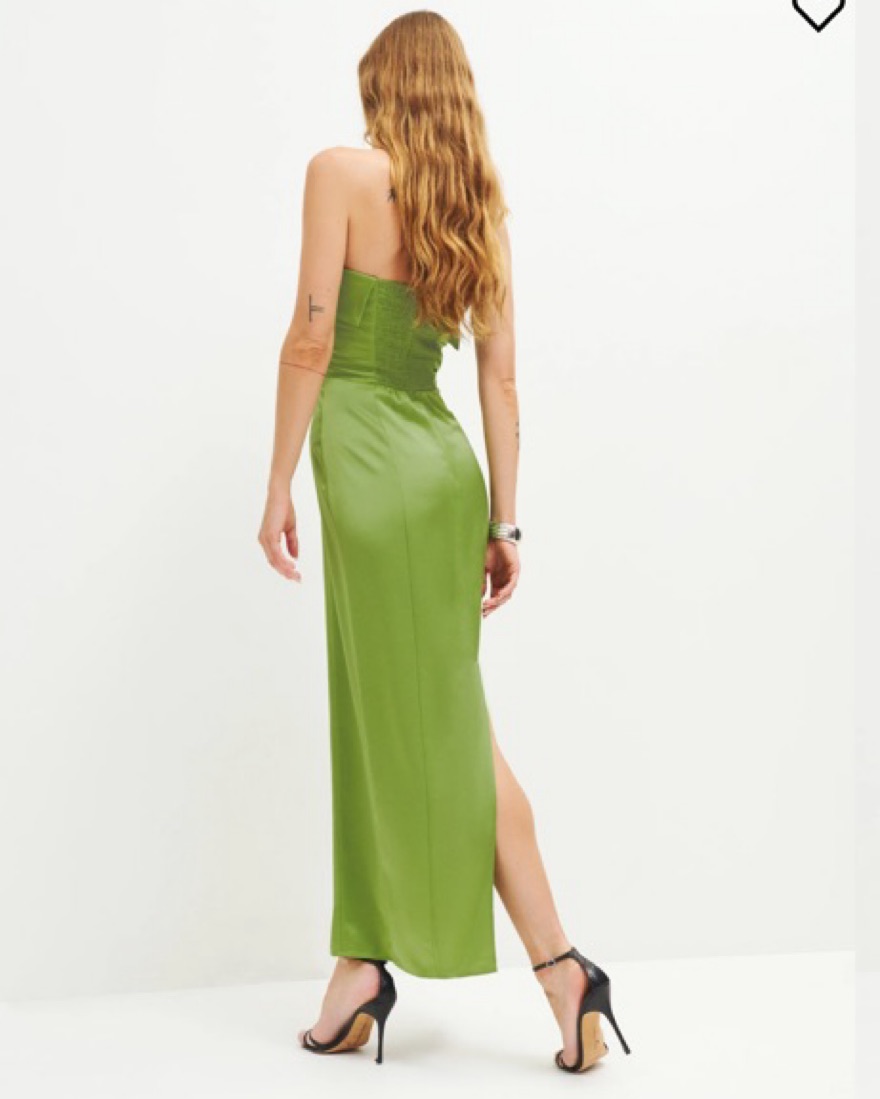 Gorgeous color, strapless, ankle length, slit in back, always a hit