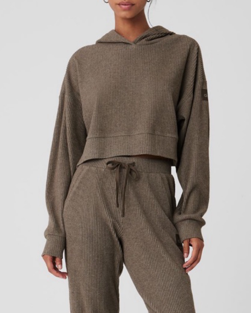 Meet the set you’ve seen all over your feed. The Muse Hoodie and Jogger in the limited edition Olive Tree Heather color are done in a plush, incredibly soft, wide-ribbed fabric that feels as good as it looks. Luxuriously cozy. Top size Small bottoms size XS.