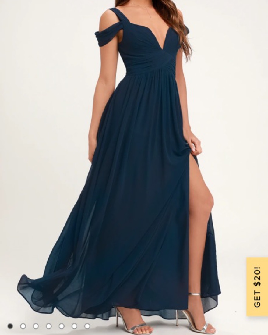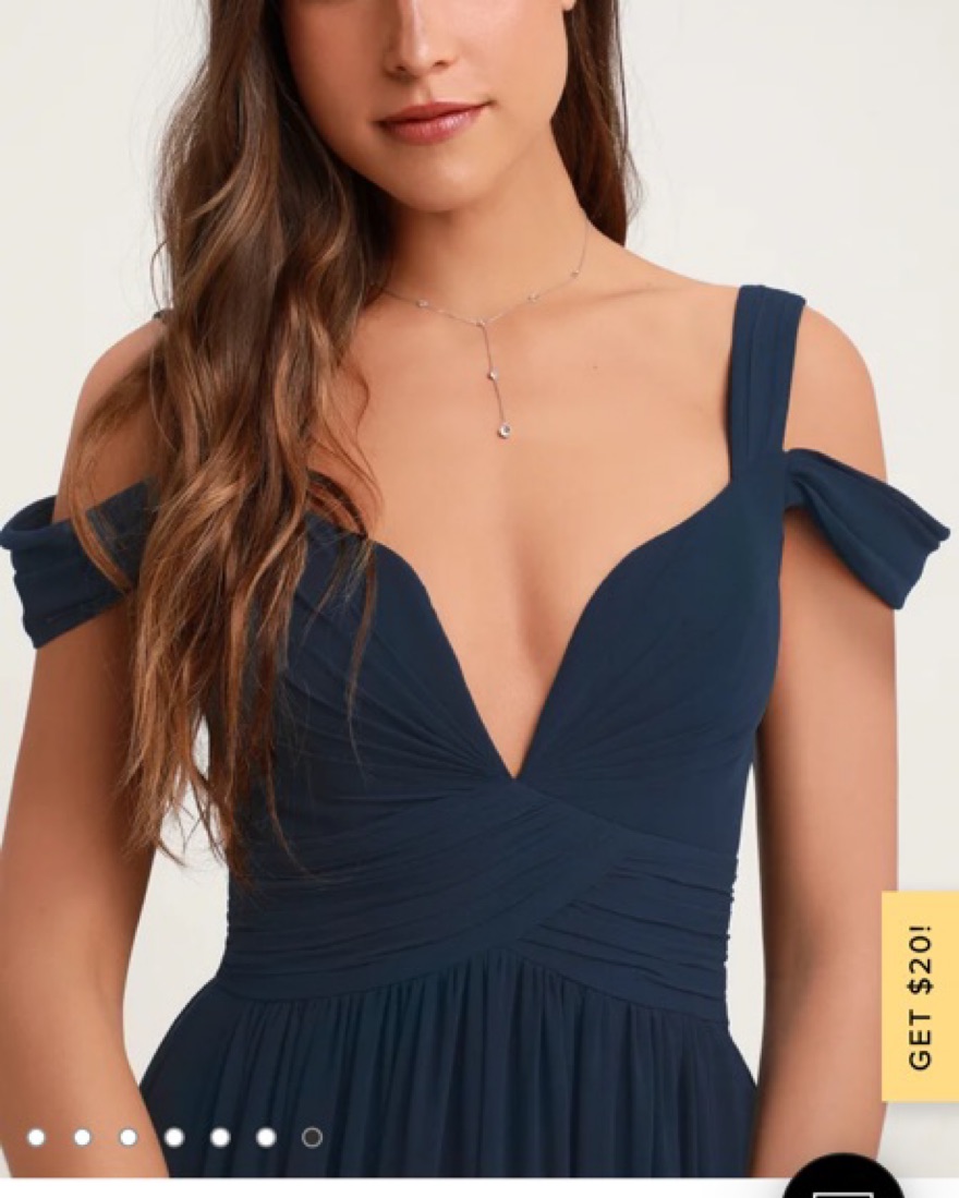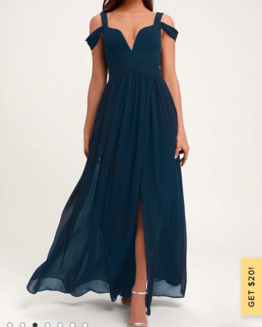 From posh prom or lavish cocktail party, and from sea to shining sea, the Lulus Ocean of Elegance Navy Blue Maxi Dress will have you in the lap of luxury wherever you may go! Navy blue Georgette starts this exquisite ensemble off with tank straps joined by sheer off-the-shoulder straps.