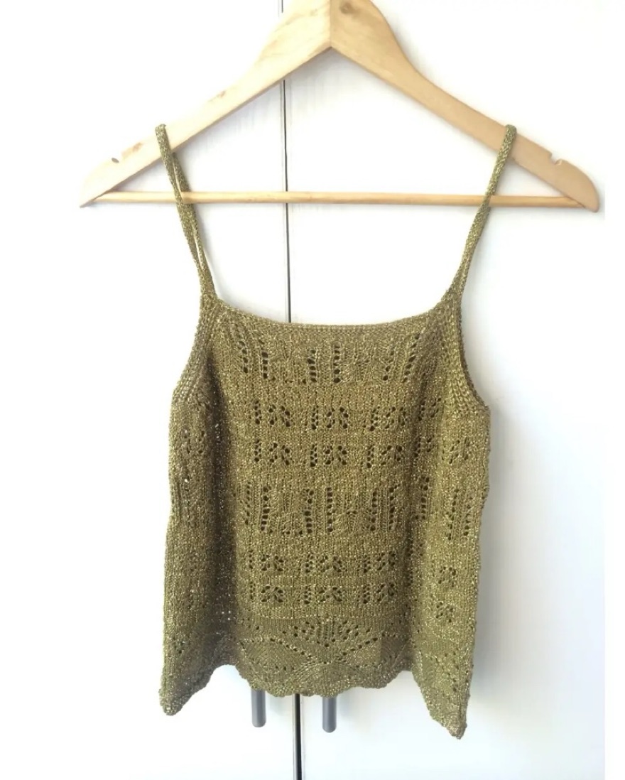Size women’s M, not much stretch to, has some metallic woven into the thread. It’s in the color khaki / bronze.