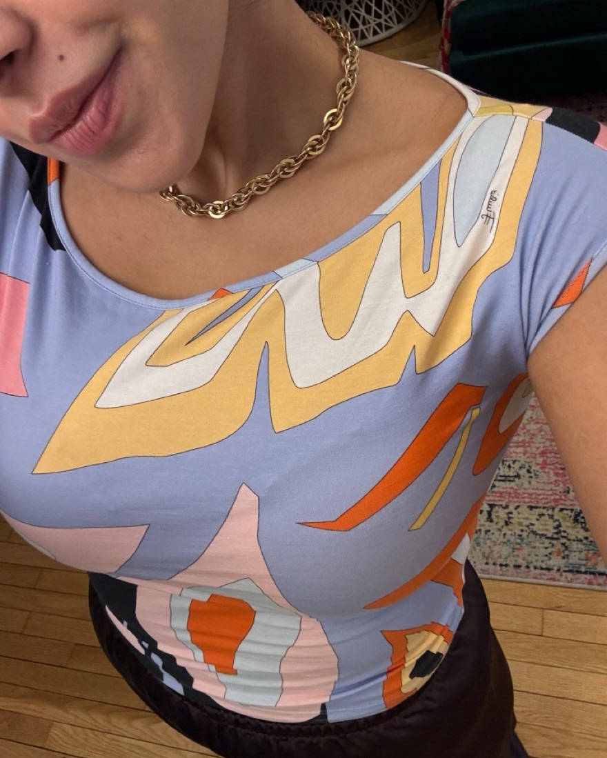 This Emilio Pucci top features the classic and eye-catching Pucci design, perfect for making a statement