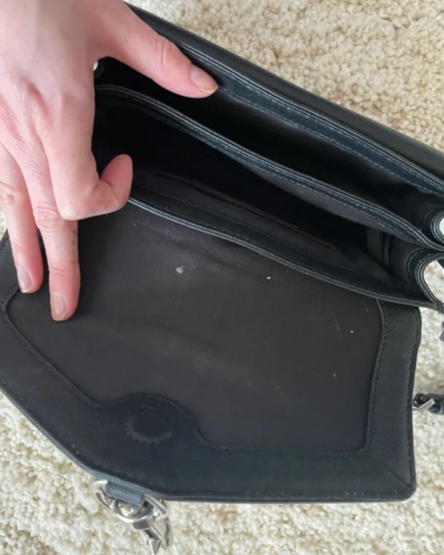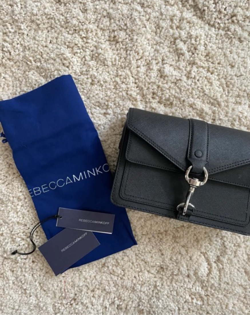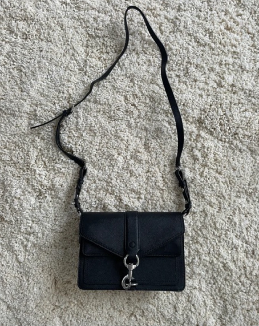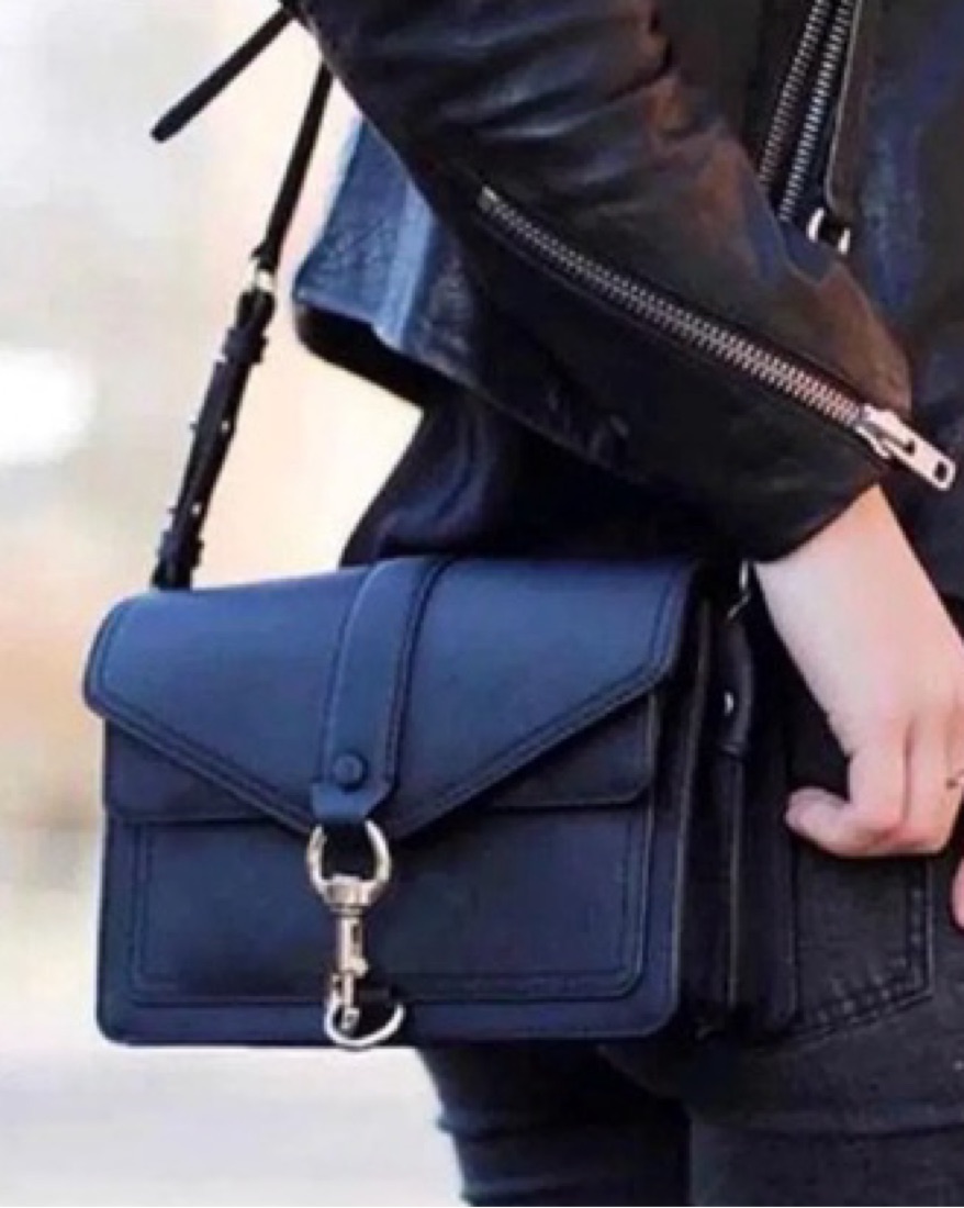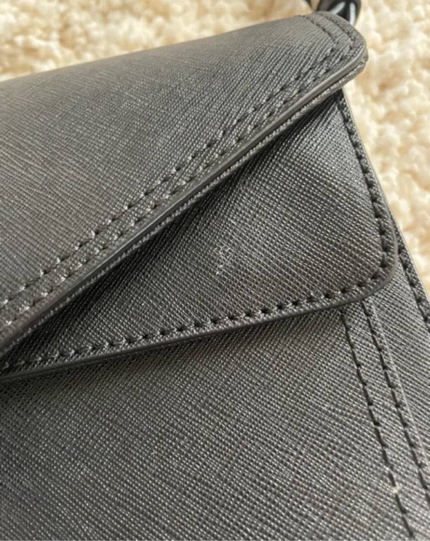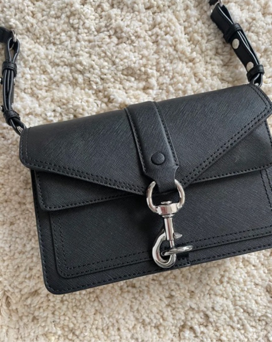 The jumbo-sized, shiny, metal lobster clasp anchors the eye amid a backdrop of crosshatched texturing. Dual interior compartments allow for optimum organization, while adjustable strap lets you customize the fit. Details: saffiano construction, approx. 8.5"W x 5.5"H x 3"D, approx. 20" strap drop.