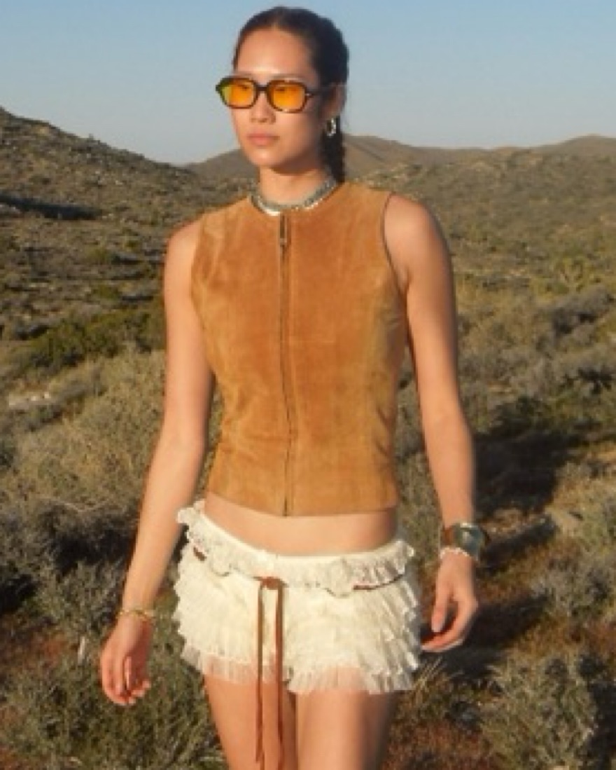 Vintage brown surde leather vest- fitted - had it tailored so it snatches me - wore to coachella!!!