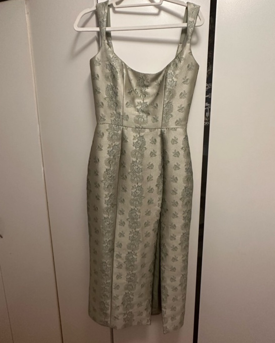 Markarian Mercutio sage brocade corset midi dress. Size 4. Does NOT have the belt pictured in the stock photo