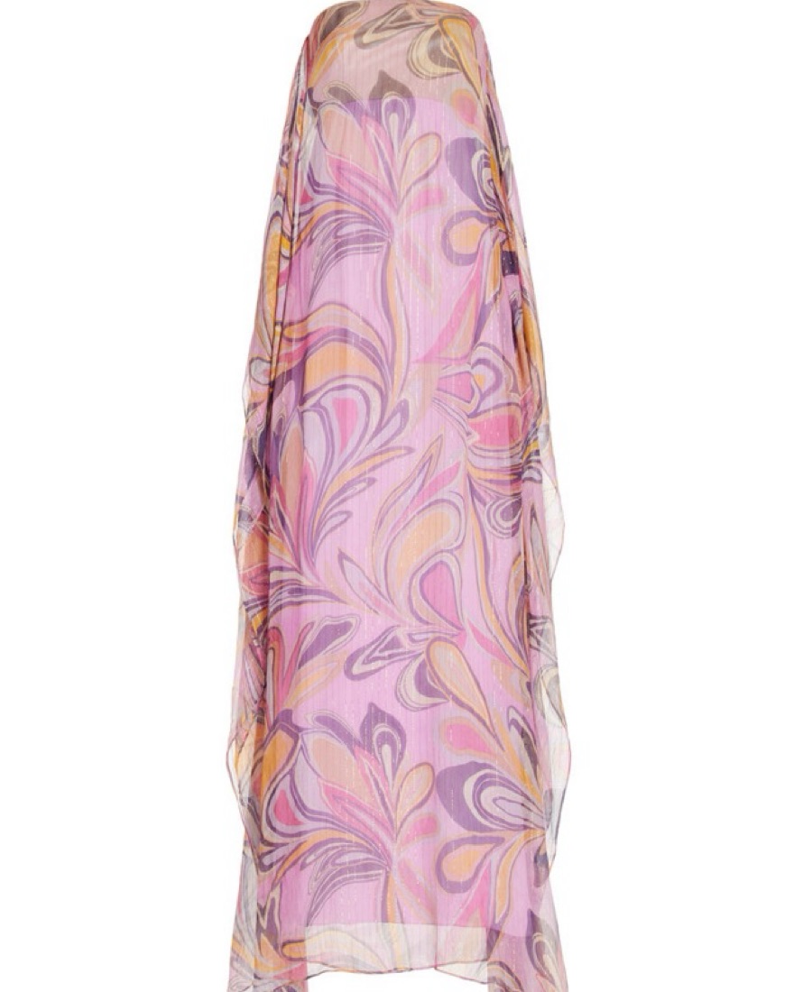 Perfect dress for a wedding! This dress is very light weight and flowy, made of a silk blend fabric.