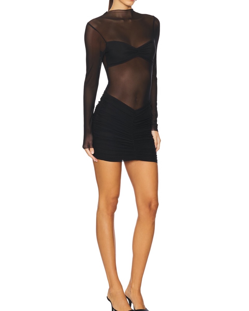 This sleek and sultry bodycon dress is perfect for a night out on the town. The sheer mesh details create a striking, statement-making look.