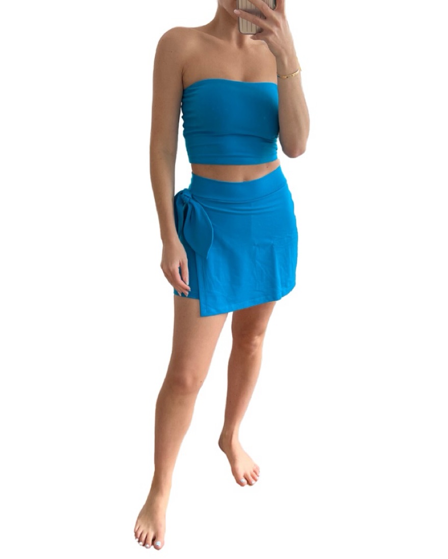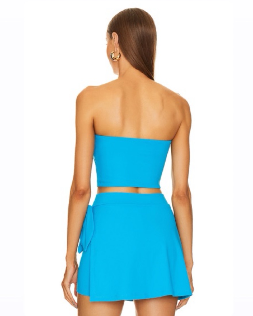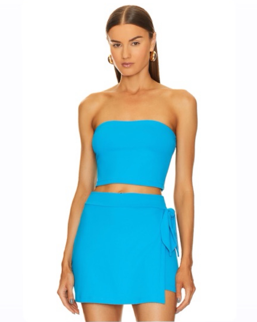 BOTH SIZE:XS SUPER FLATTERING, sucks everything in and smooths it out lol Side Tie Mini Skort • Original Price: $148 • 90% nylon, 10% spandex • Pull-on styling • Self tie bow detail at hip • Stretch jersey fabric Tube Top • Original Price: $58 • 90% nylon, 10% spandex • Stretch jersey fabric