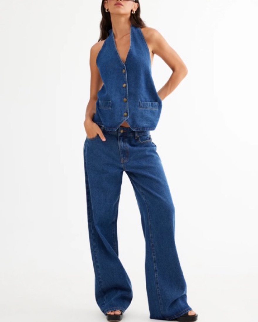 Lioness Denim Halter Top and Jean Set by Lioness - Pickle
