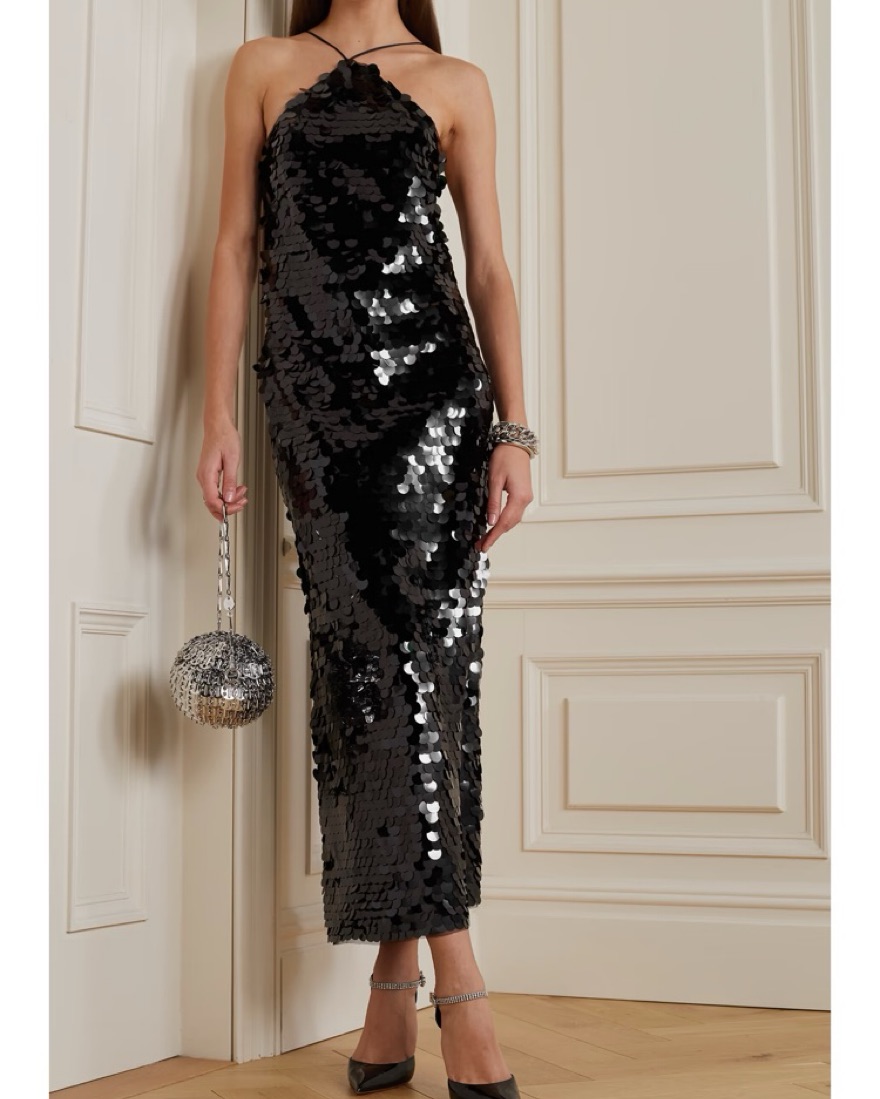 This stunning black sequin halter dress is the perfect statement piece for your next special occasion. While there are a couple of sequins that have shifted slightly in a few spots, this pretty unnoticeable when worn and doesn't affect the overall appearance or quality of the garment. The dres