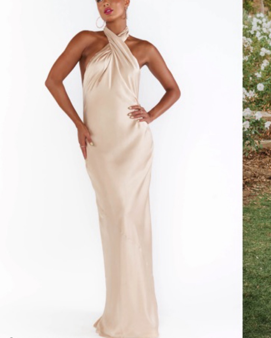 Elegant Halter Neck Maxi Dress by Show Me Your Mumu - Pickle