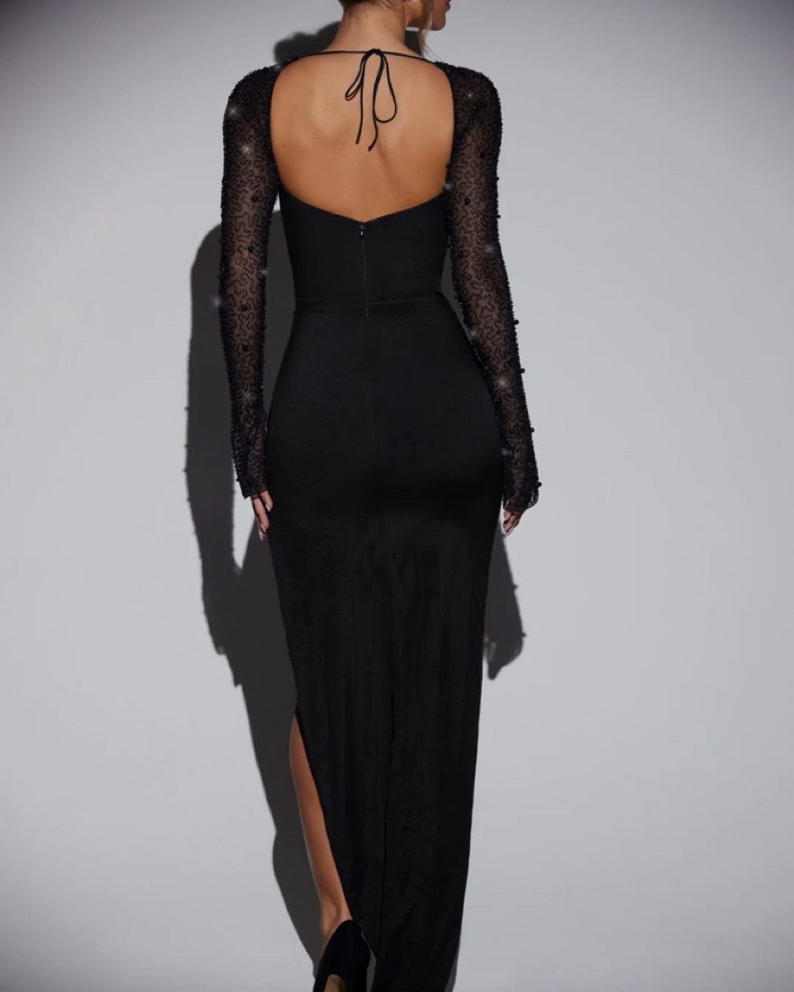 Beaded Sleeve Black Dress by Oh Polly - Pickle
