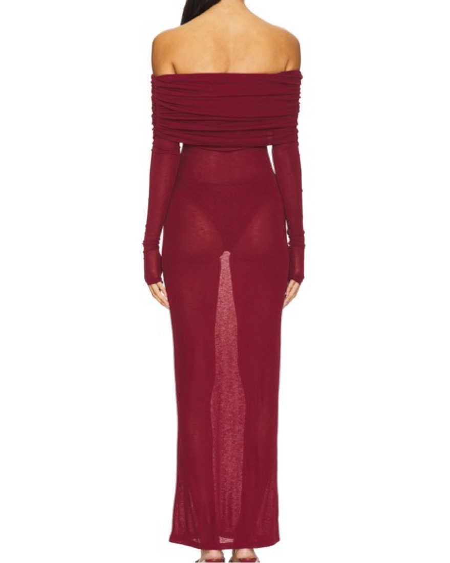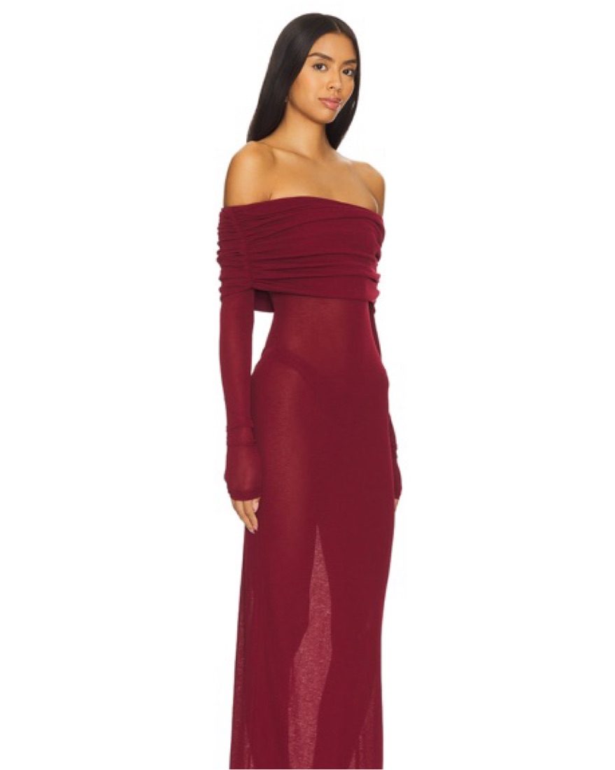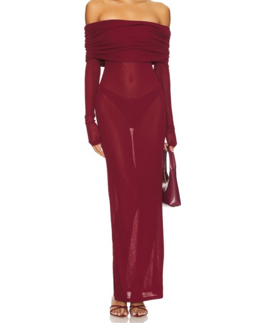 Partially lined Garment is intentionally sheer, undergarments will show through. Please note undergarment not included Pull-on styling Off shoulder styling