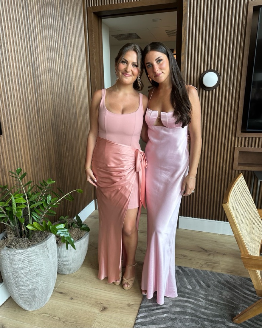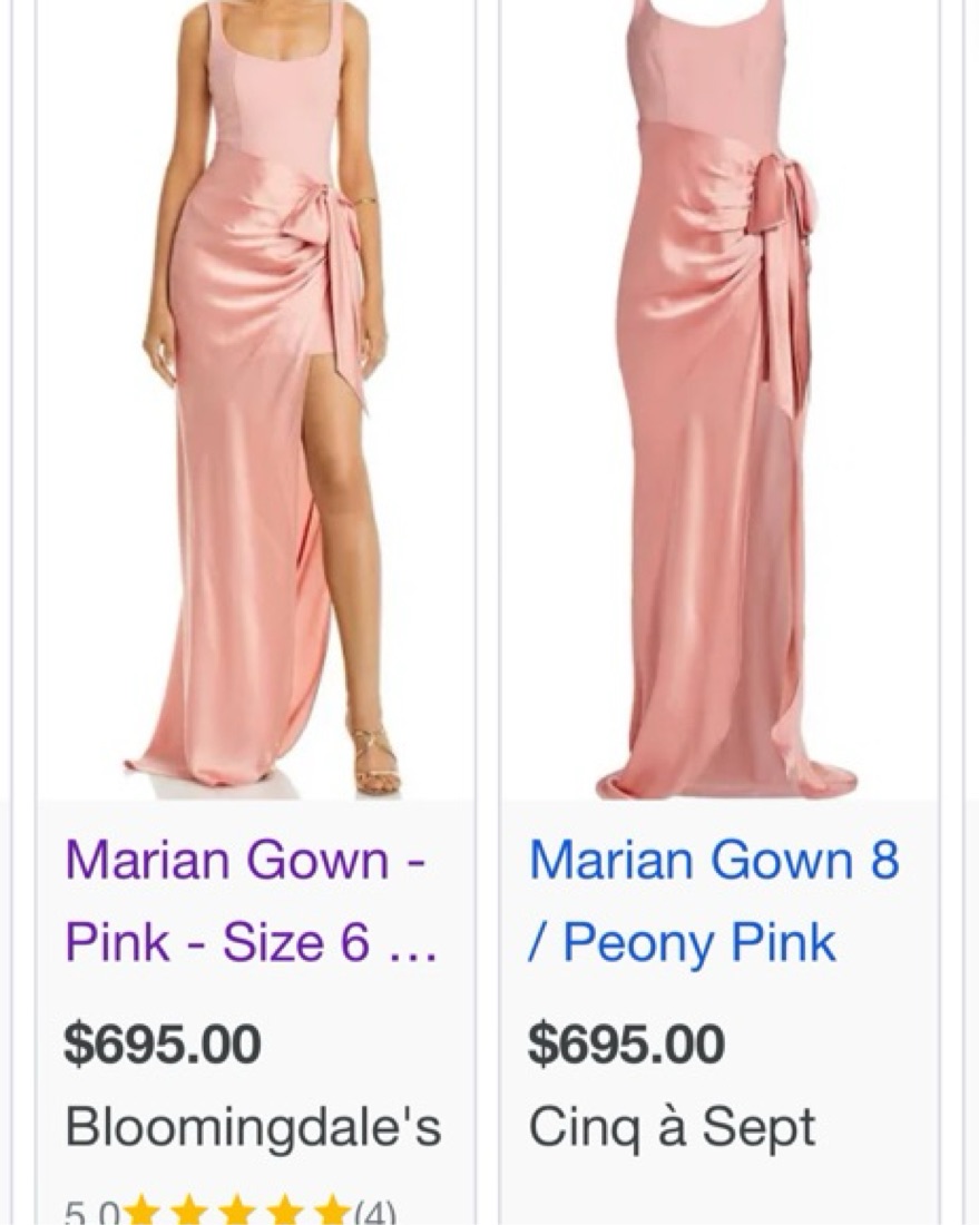 Pink cinq a sept dress size 8. Straps slightly tightened + shortened. I am 5’4.