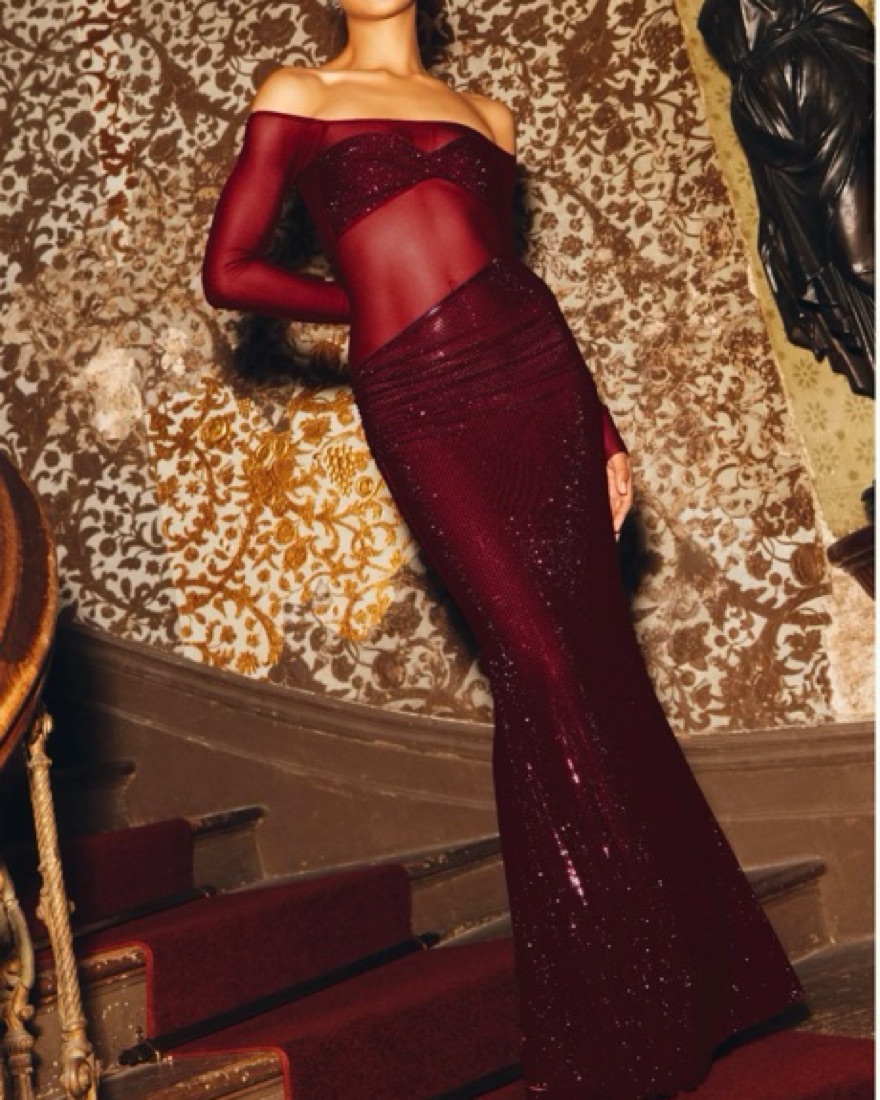 Meshki Off Shoulder Burgundy Maxi Dress by Meshki - Pickle