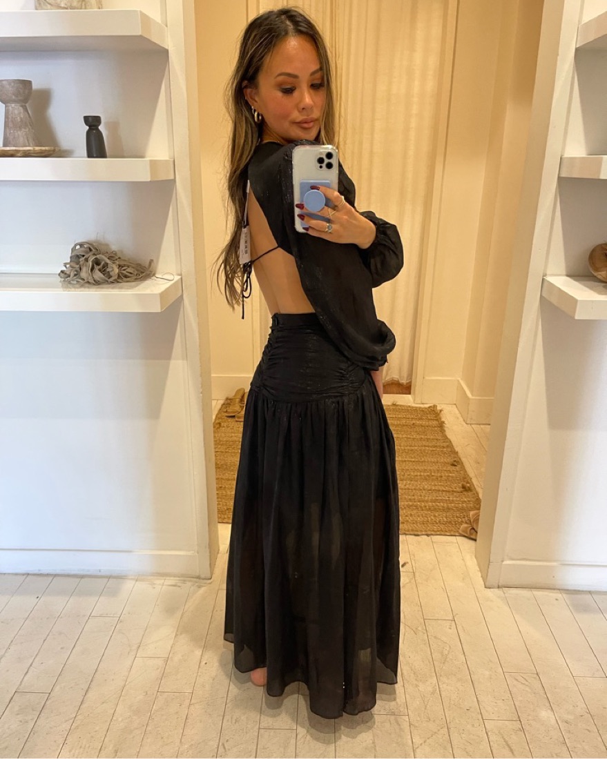 amazing dress so flattering! has a slit along the leg with and open tie back