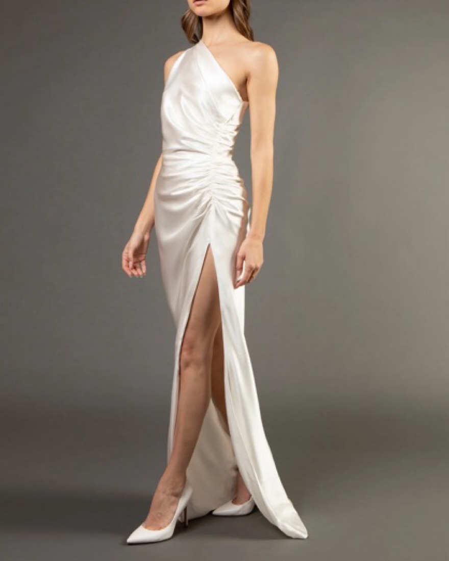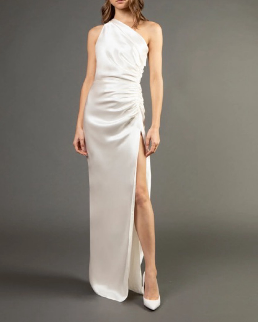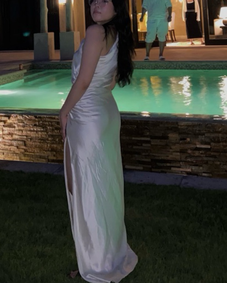 Got it tailored so it a perfect length for 5’4 with 3 ish inch heels. Gorgeous 100% silk.