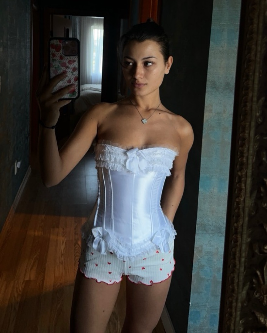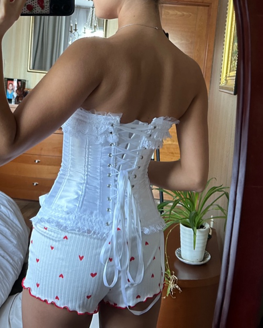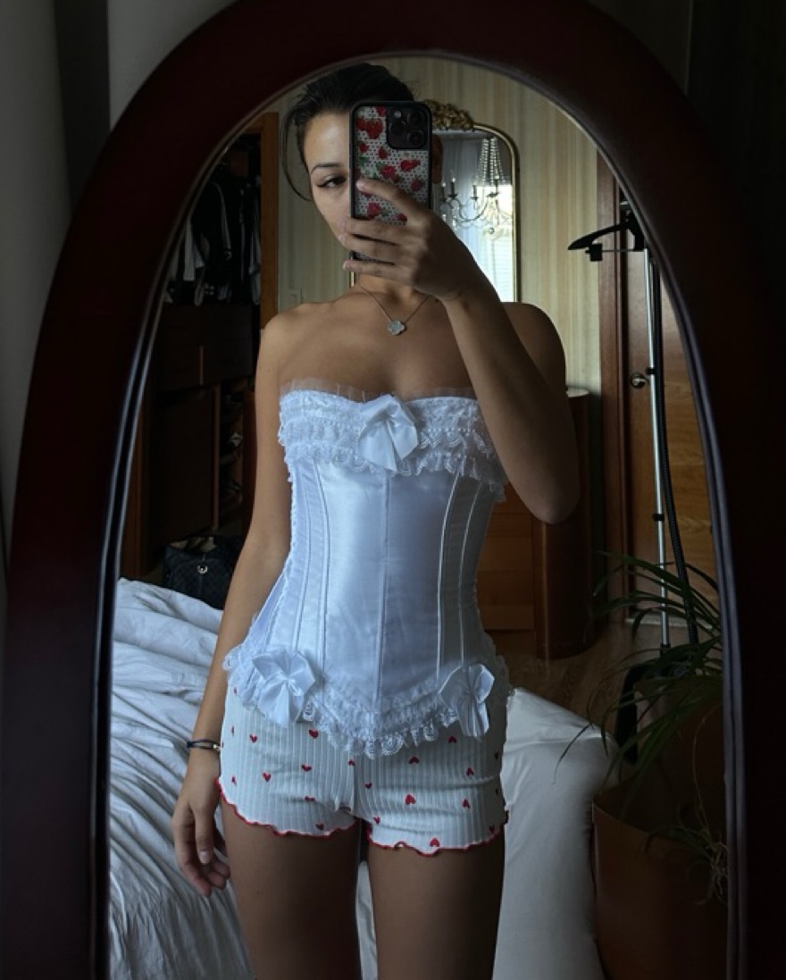 Perfect for halloween! Zipper on the side. Fits xs / s, ties in the back so it regulates the fit.