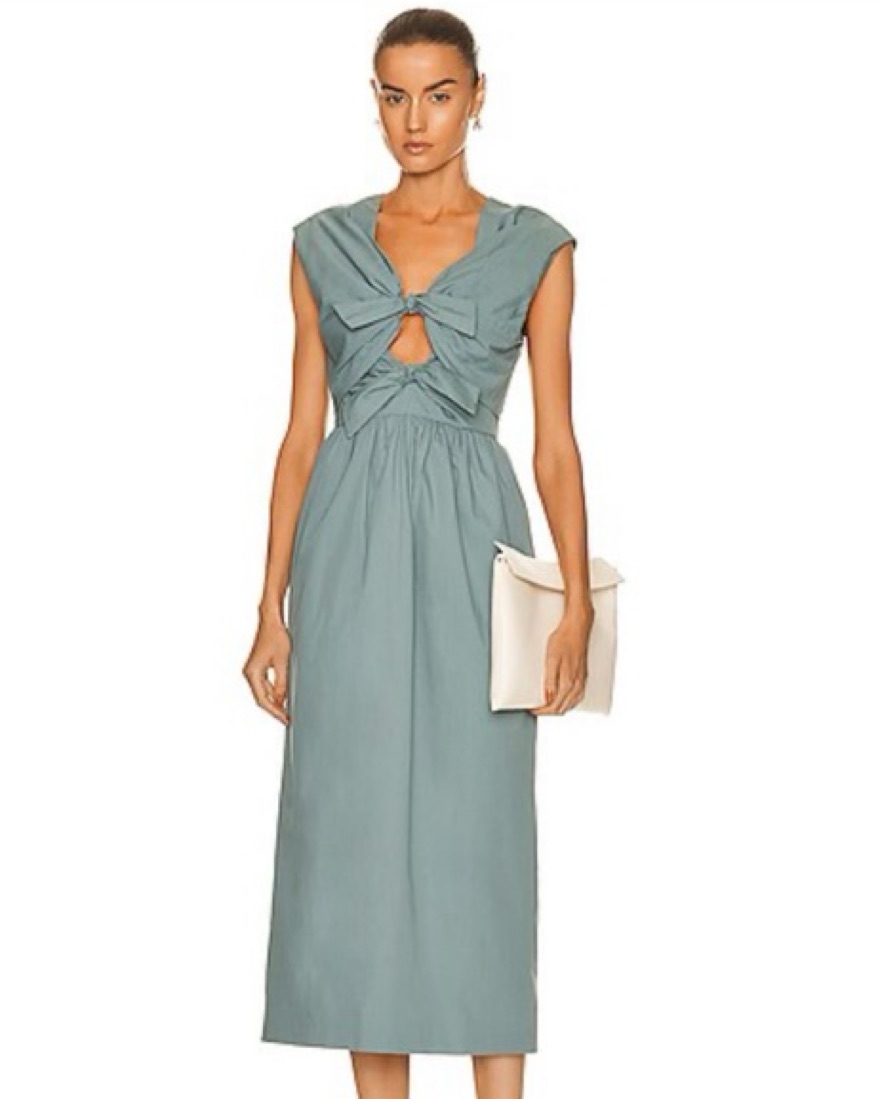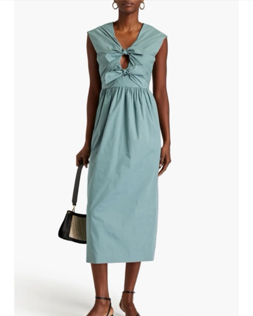 Tove's bow-embellished gathered midi dress. Crafted from organic cotton-poplin. European size 38, fits like a 4.