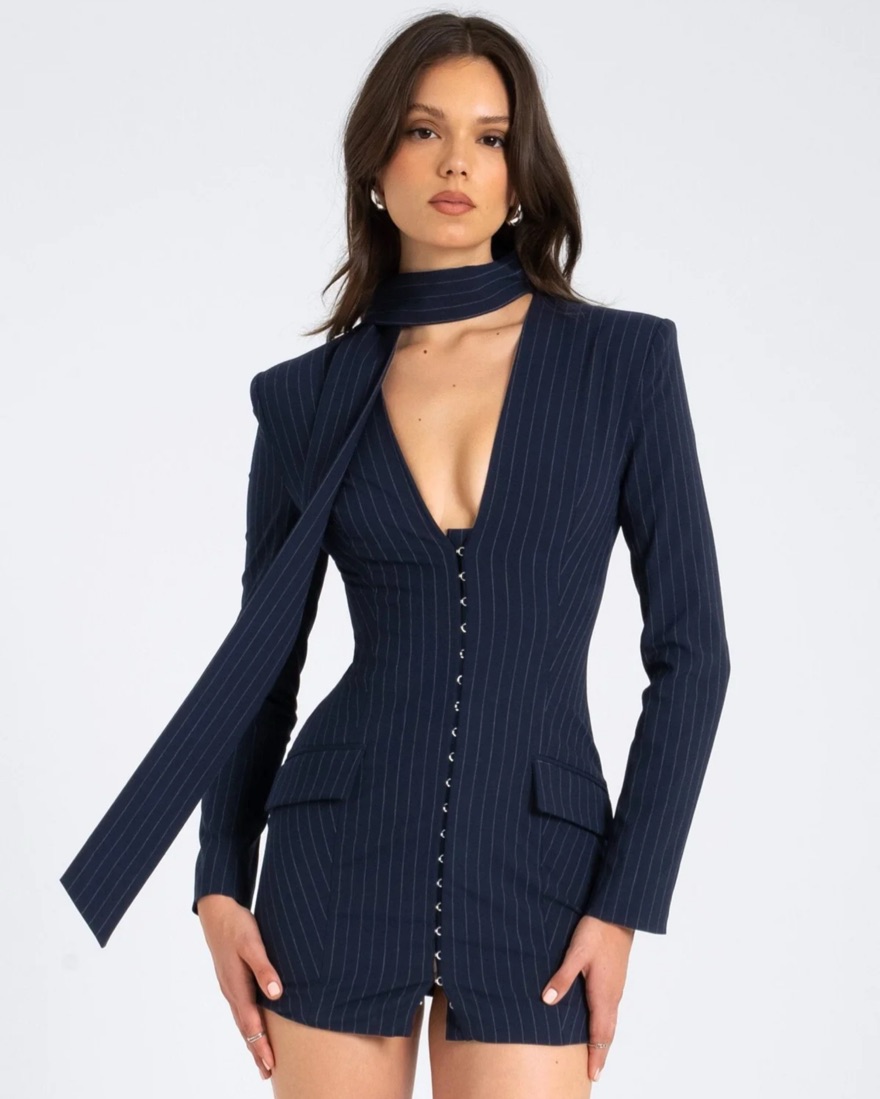 This is a fitted blazer dress that pins up in the front. Perfect condition and has never been worn before. Dry clean only!