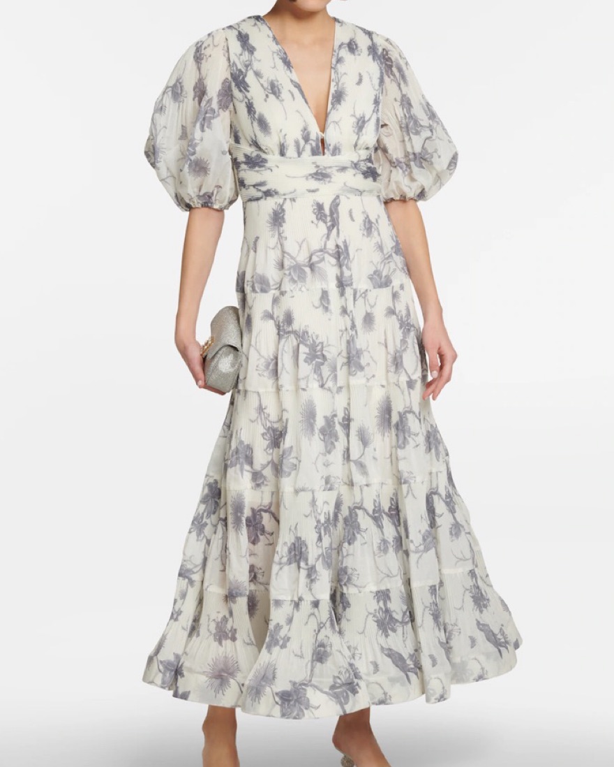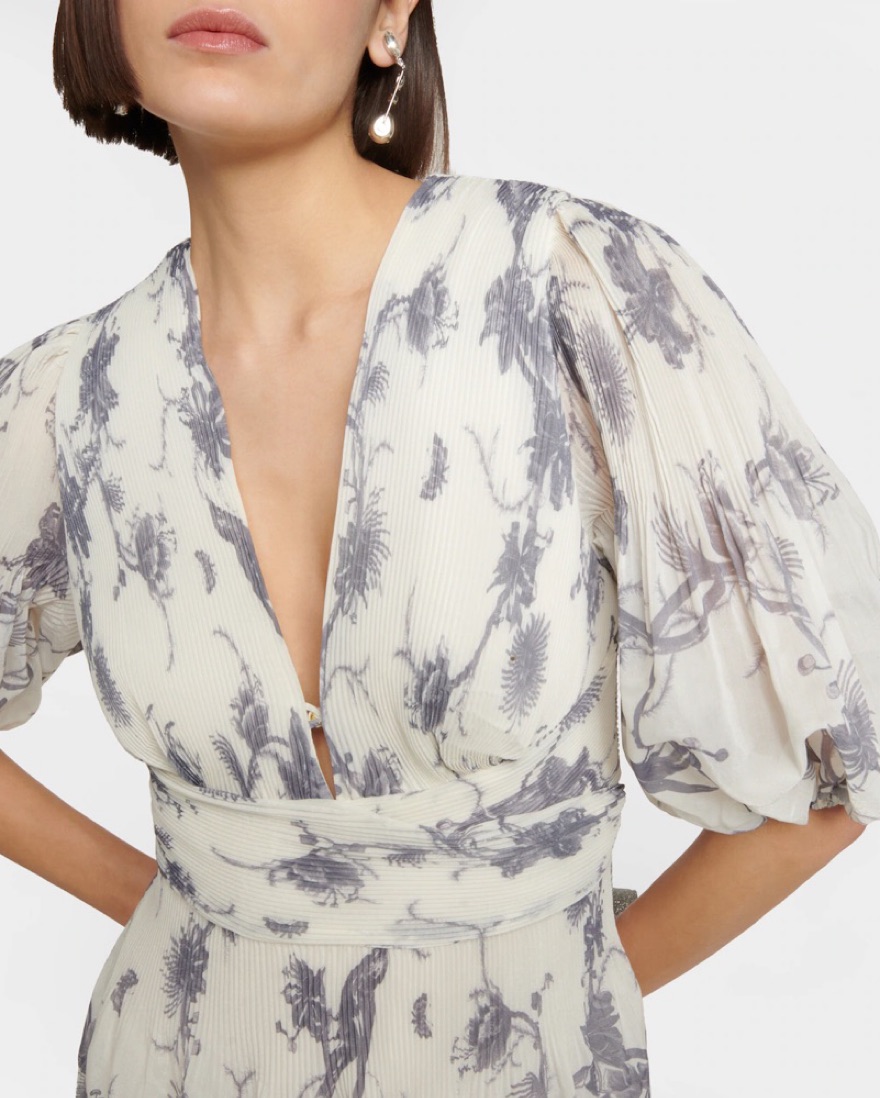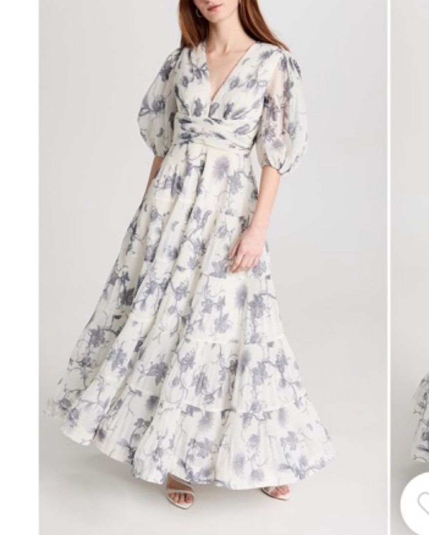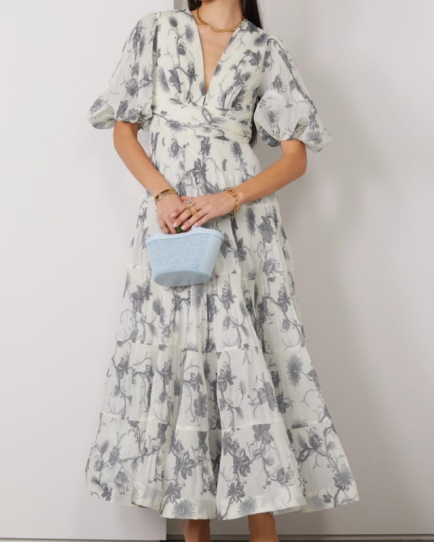 Kiera midi dress in navy floral. Tags: wedding guest, black tie, gala, formal, vacation, Mexico, Italy, Spain, Europe, rehearsal dinner, welcome party, bridal shower, cocktail party, engagement party, bride, Zimmermann, Anna October, Staud, Cult Gaia, loveshackfancy, A.L.C., Self Portrait