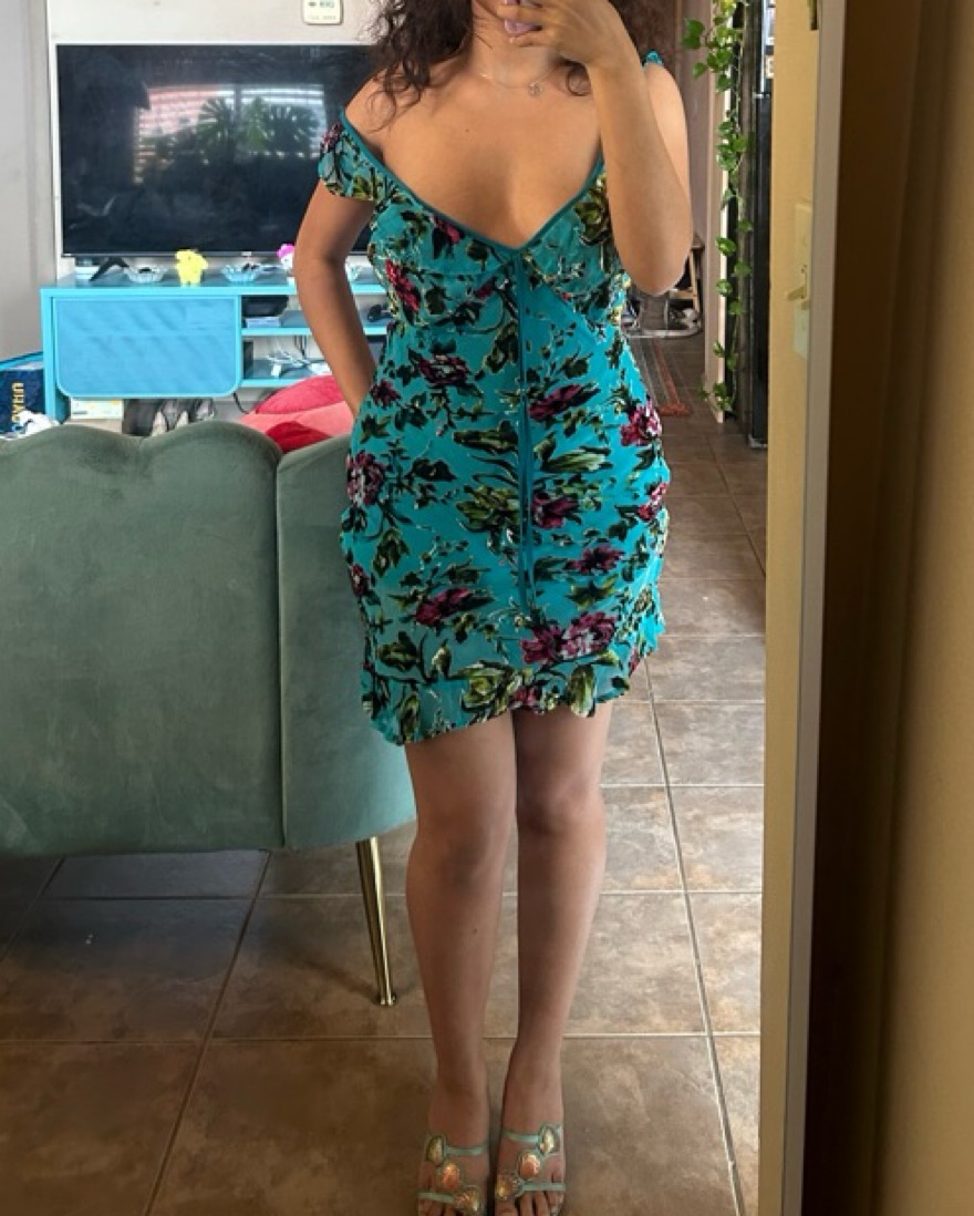No flaws; 33 in length measured from straps of dress and 10 in bust