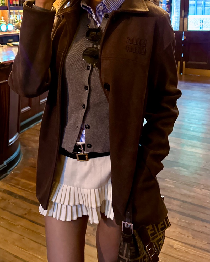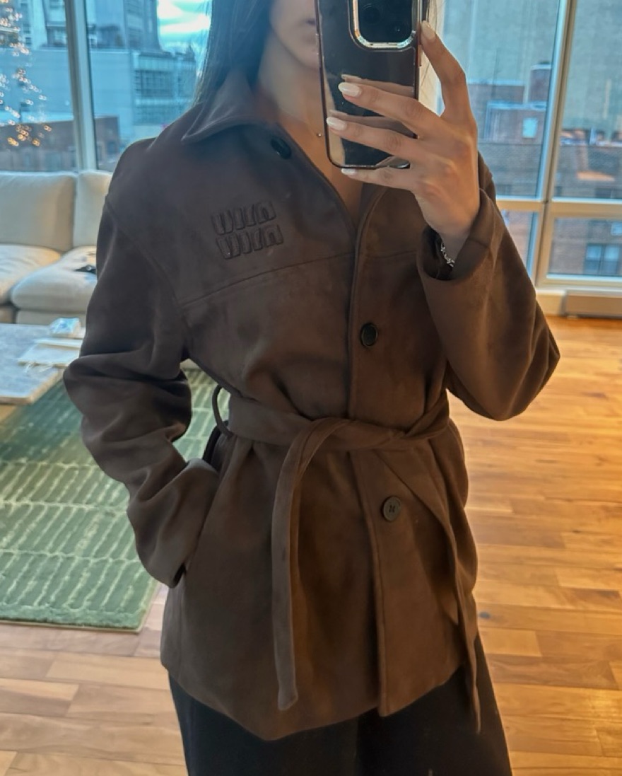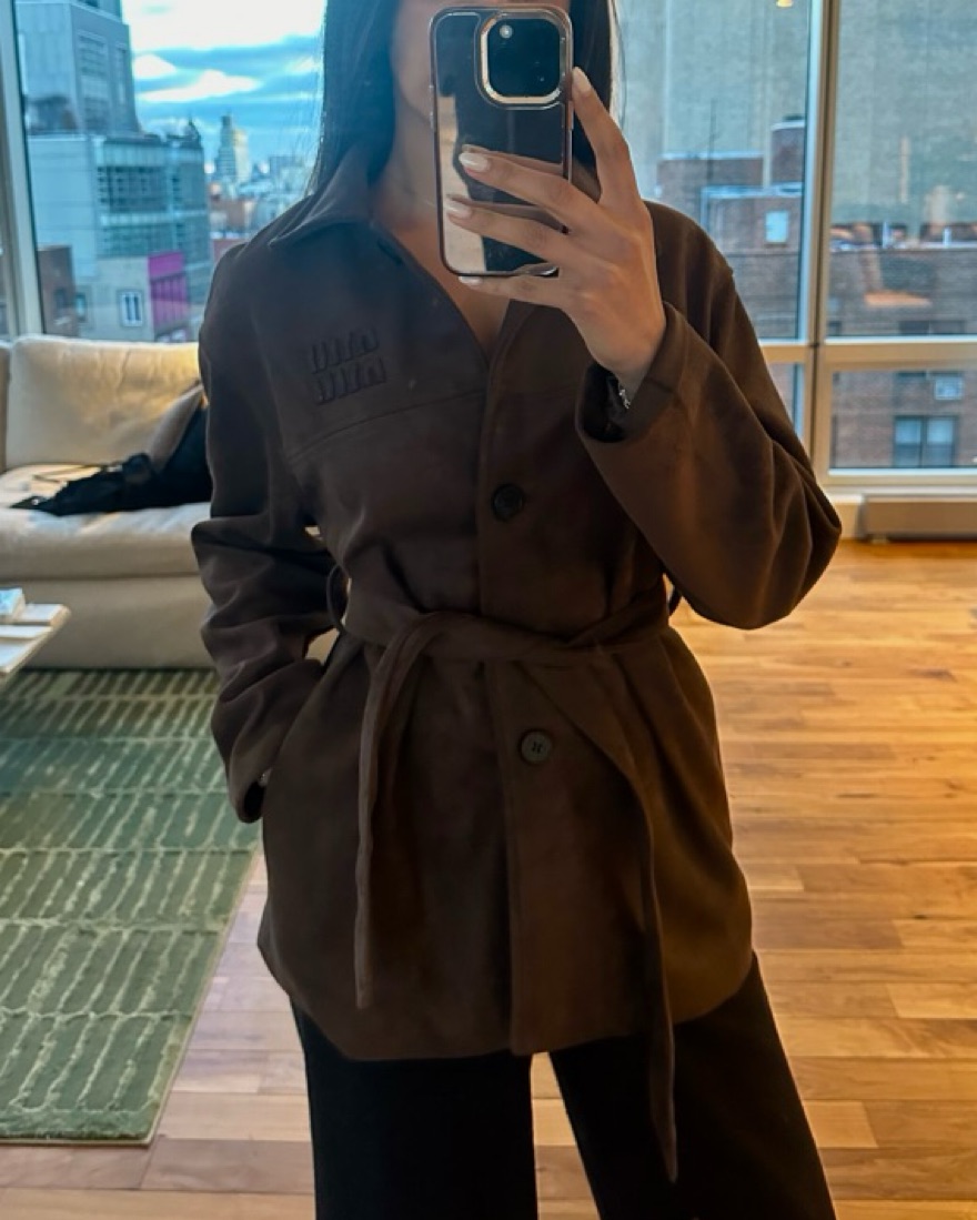 Brown suede Miu Miu jacket - purchased from ThredUp and believe it’s vintage! Super soft and looks amazing on.