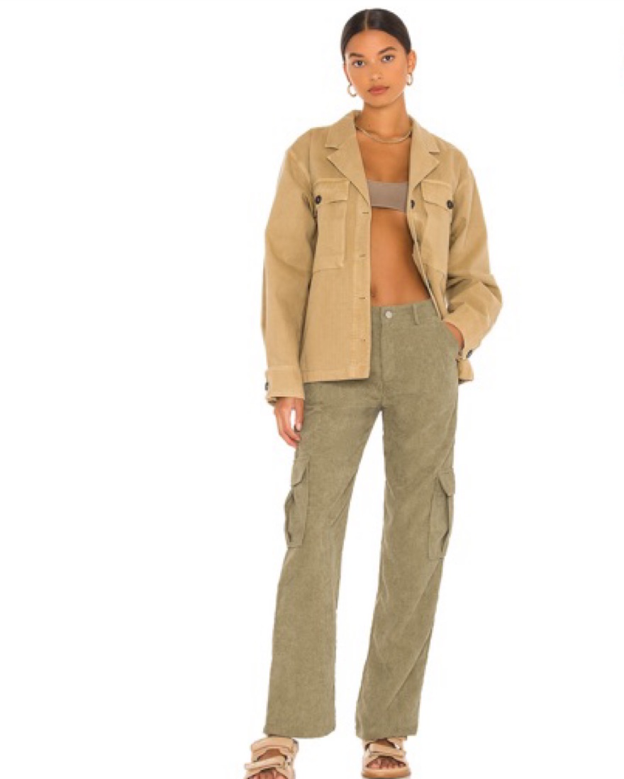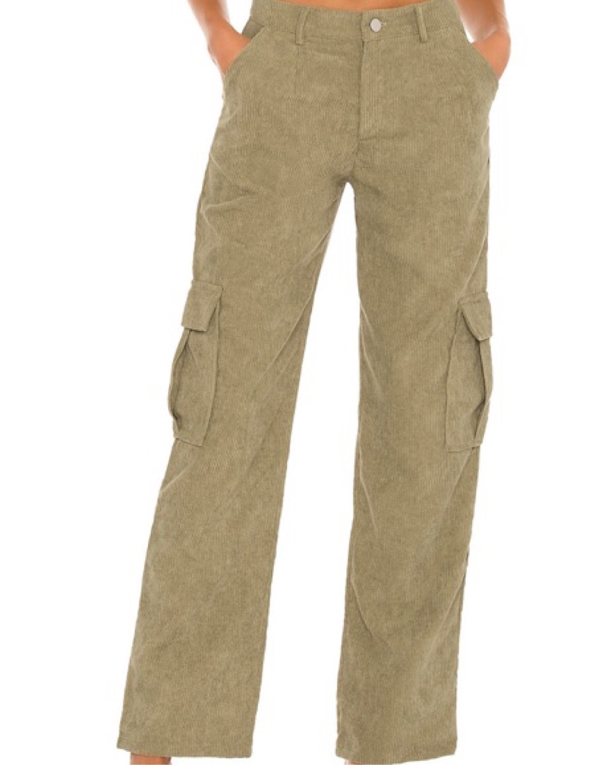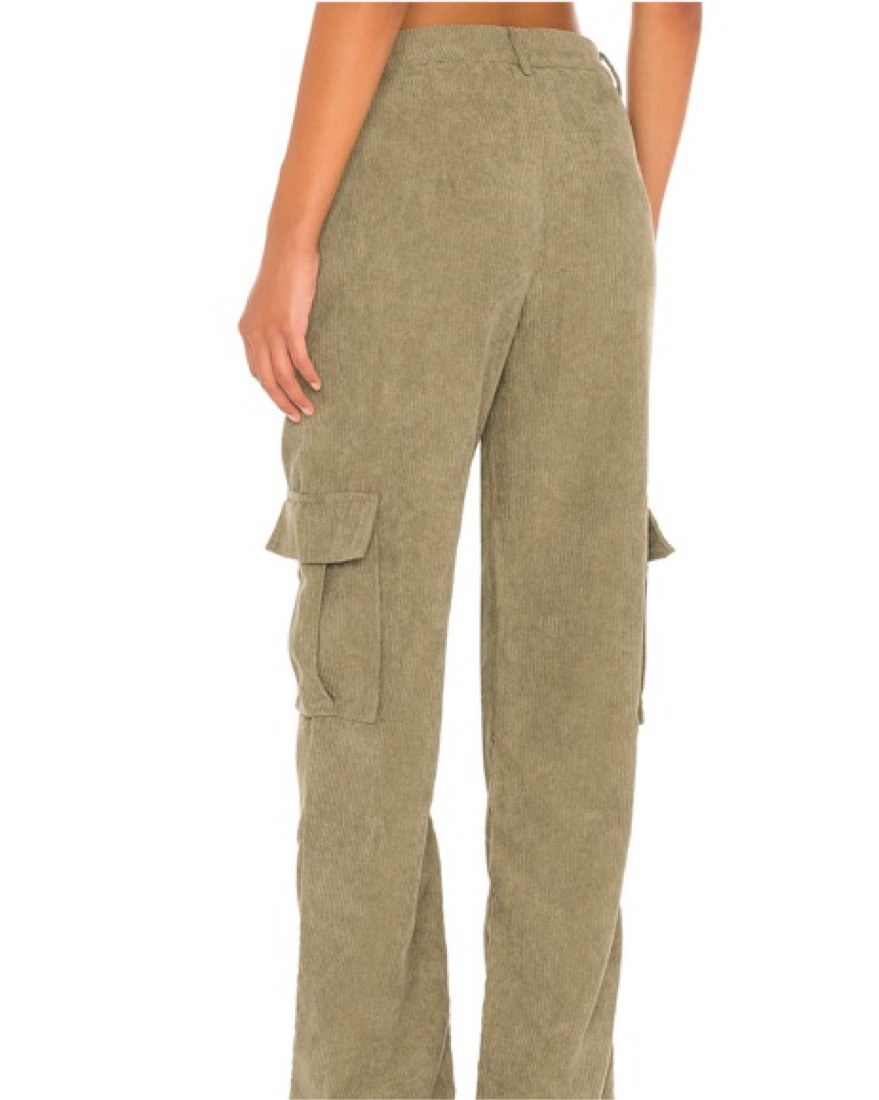 Corduroy cargo style pants witha mid rise fit. Models height is 5’9 more flattering on girl shorter than the model as the length will fit better