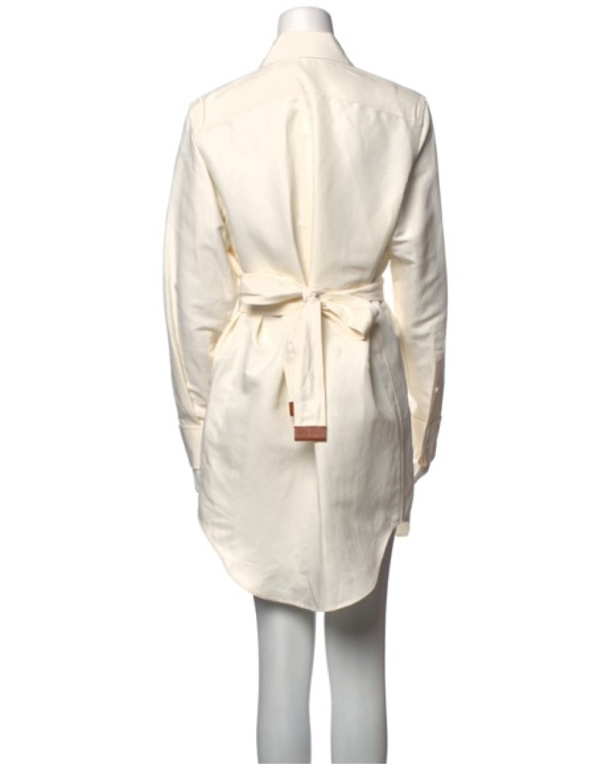 Crisp and classy Loewe linen shirt dress with camel leather details