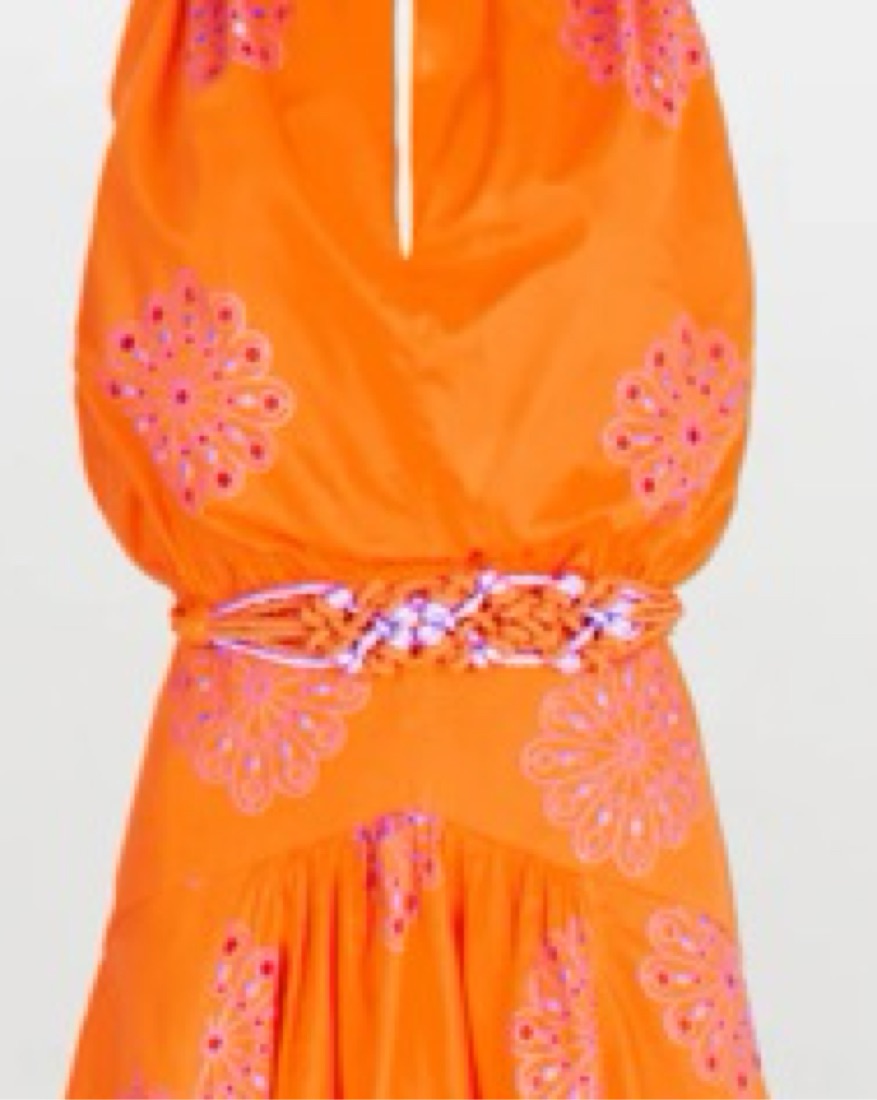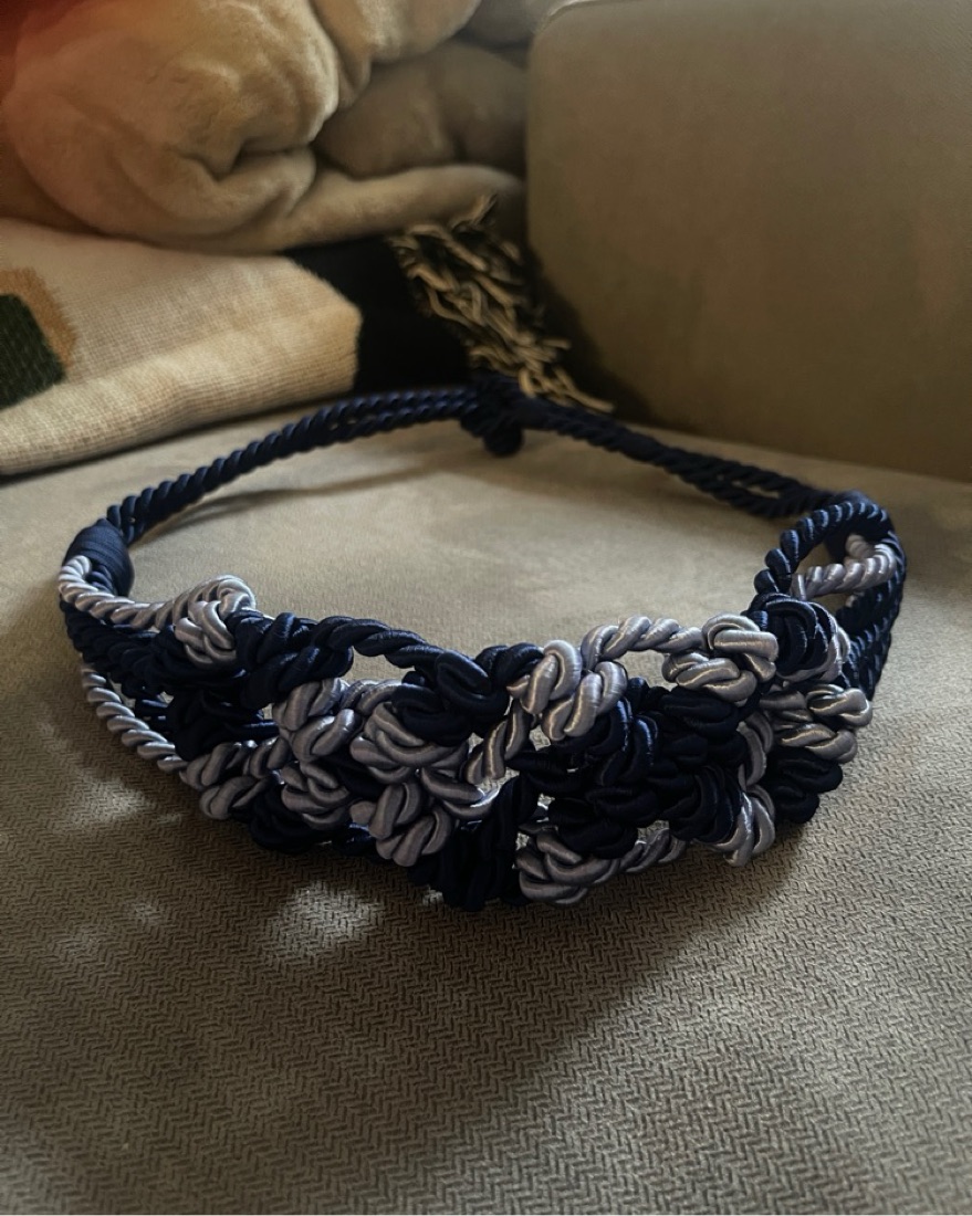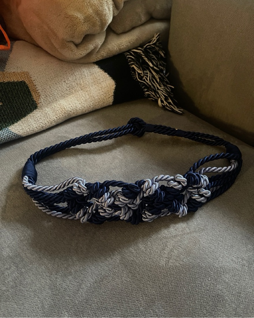 Blue rope/knotted waistband / belt / accent. Fits xxs-xs. Pictured in orange on another dress— have both blue and orange versions of the product.