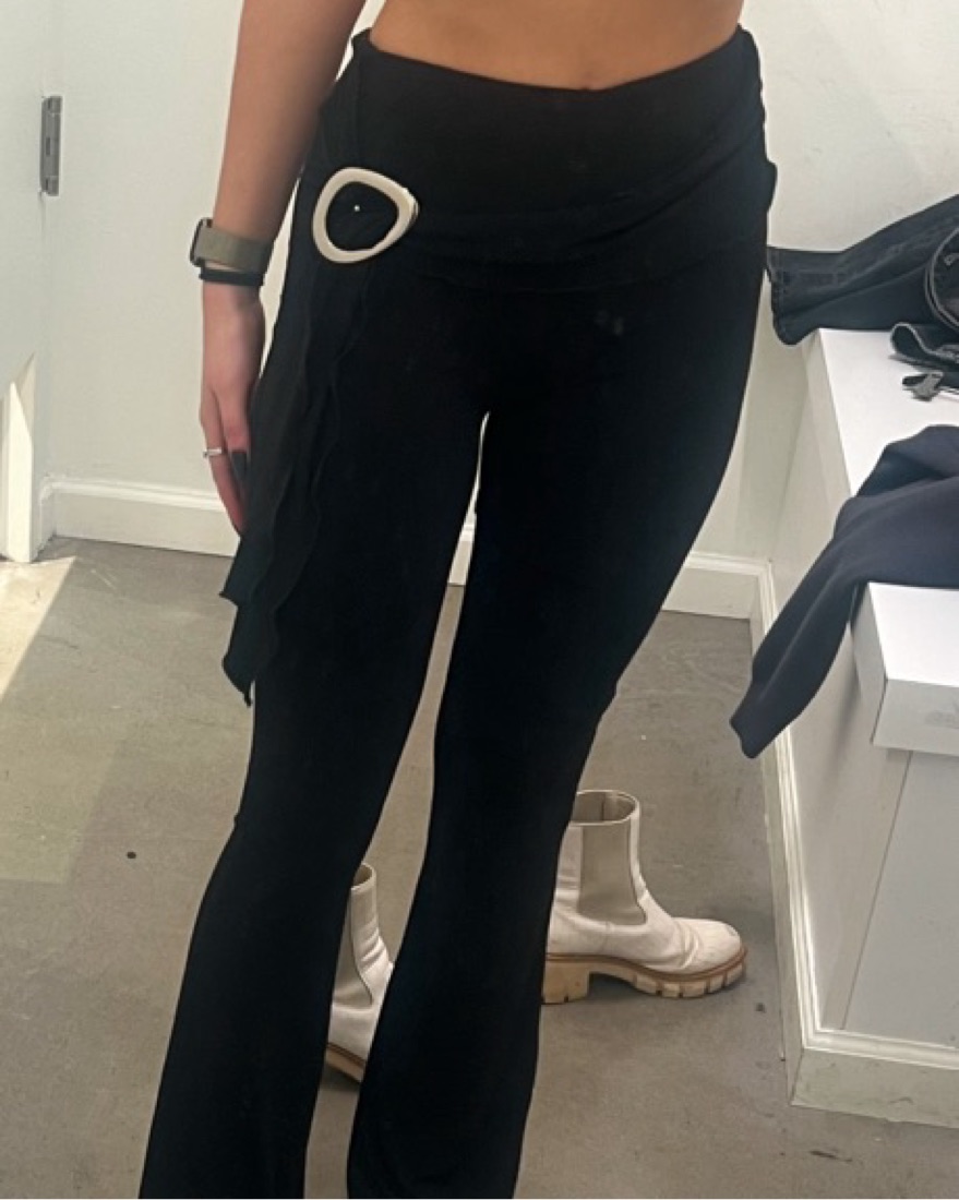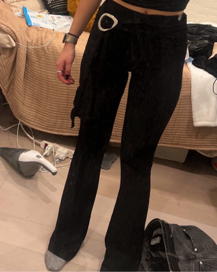 Material is kind of like yoga pants! Super comfy and flattering with a black top for going out