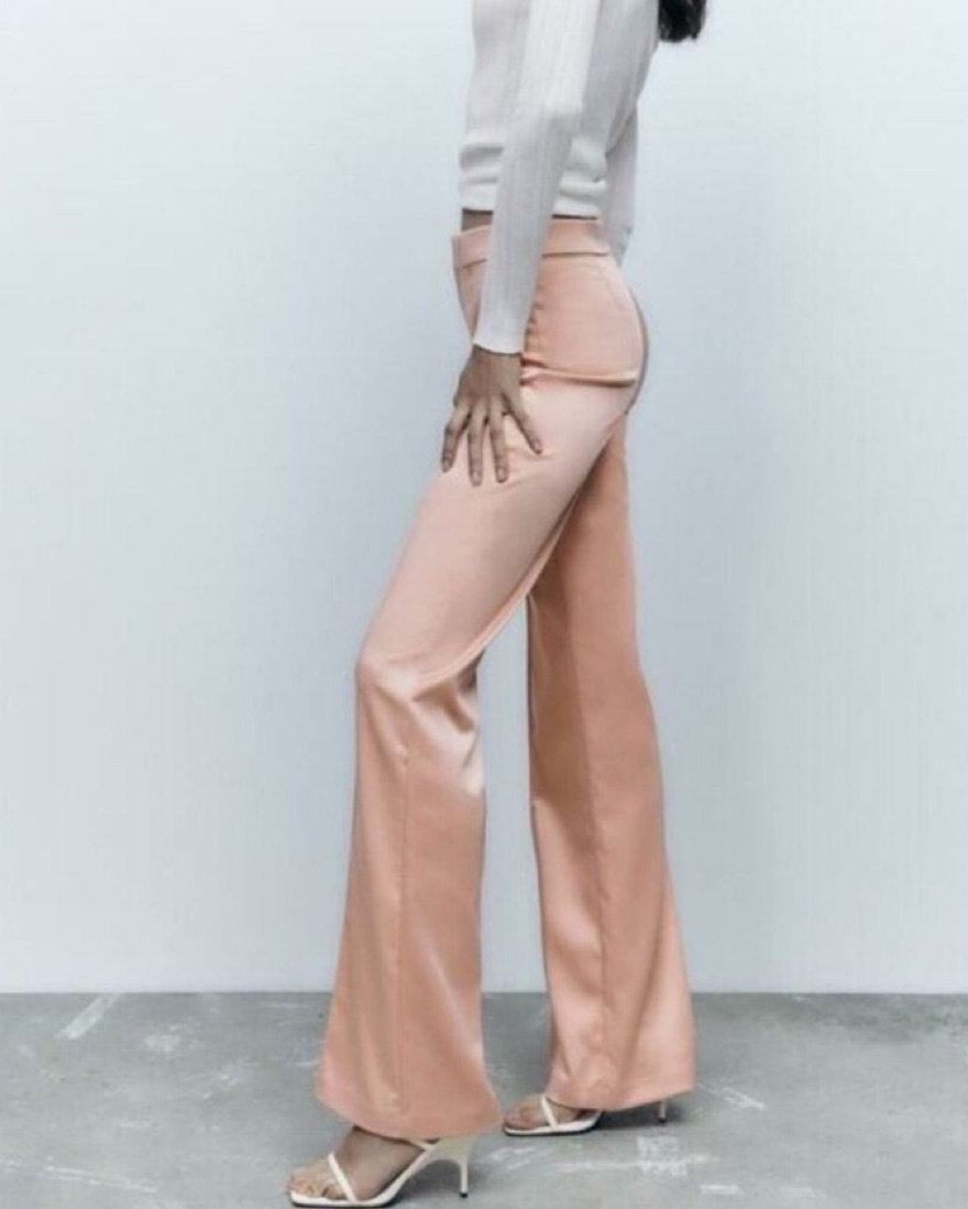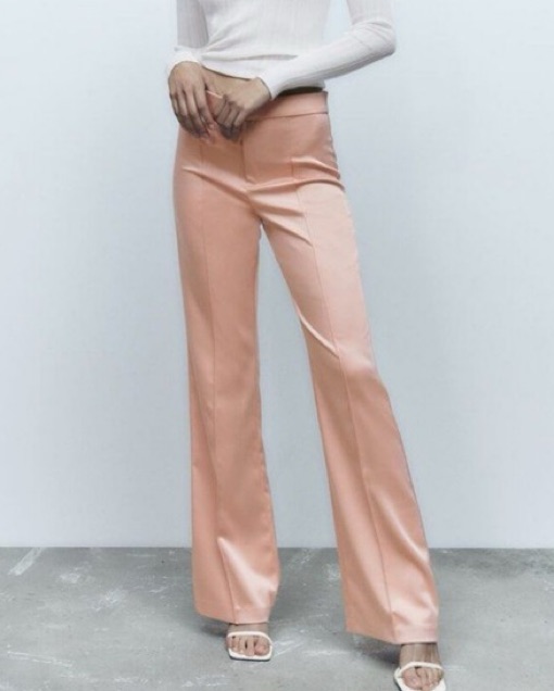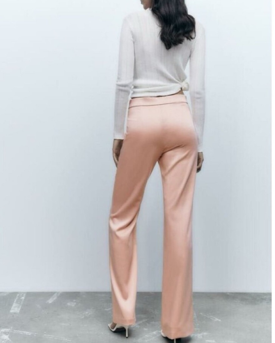 Fits short girls! These high-waisted, sleek pants from Zara are stylish and a great way to elevate a look. Wear them casually to work, the office, day activities or dress them up for going out, date nights, parties or events. Super fun and flattering with some chic shine and shimmer to them.