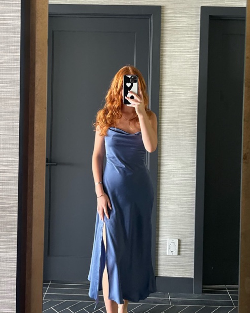 Gaia Dress in Denim (beautiful blue color, silk material) ASTR the Label