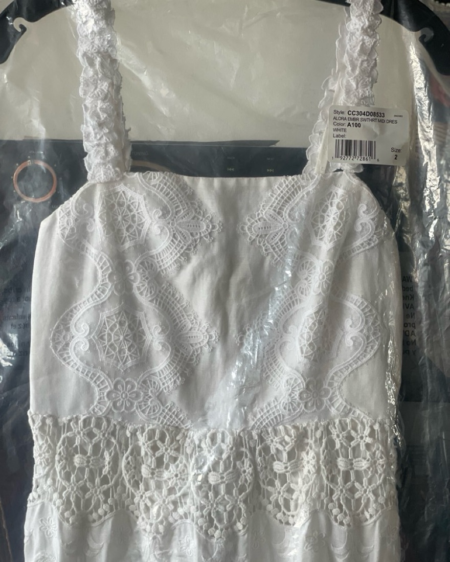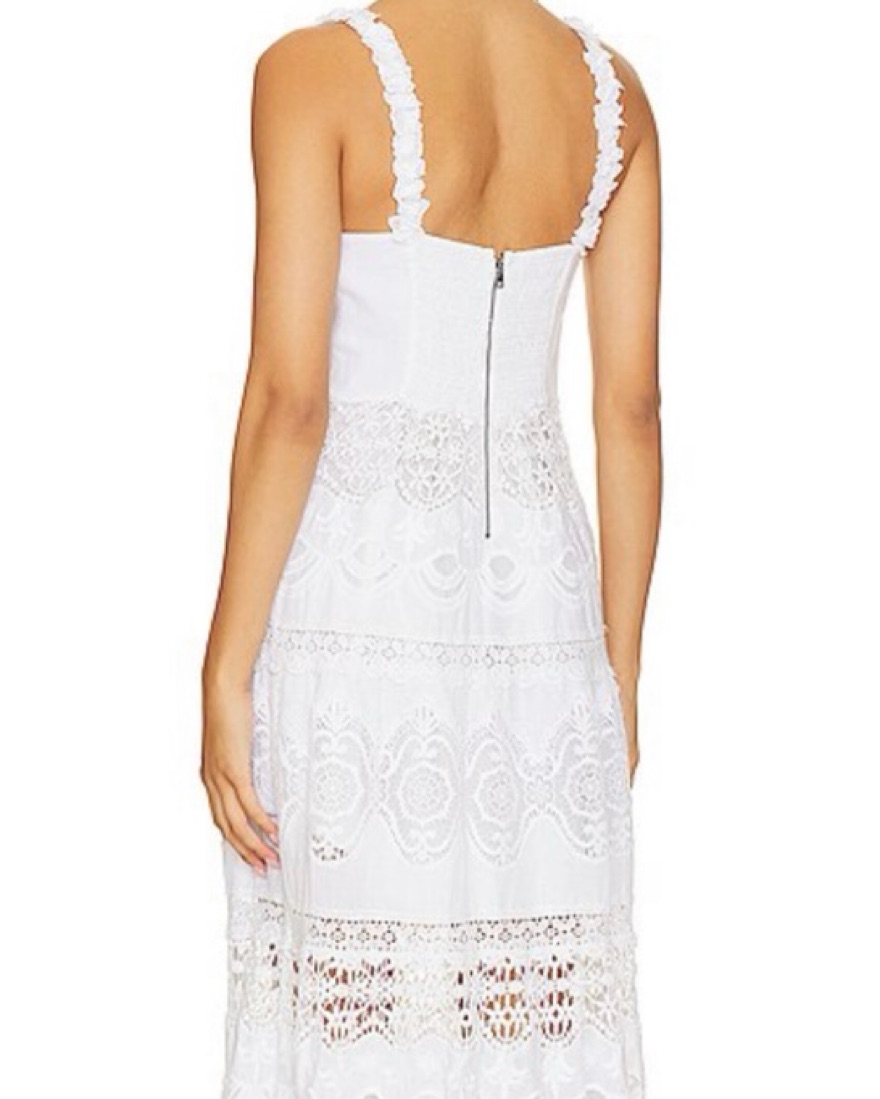 -New with tags -Never worn, perfect condition -Details: Maxi dress Embroidered Eyelet detailing Square neckline Smocked back Back zipper closure Tiered skirt Total length: 55 1/2” 55% linen, 45% cotton Fits true to size, take your normal size Dry clean only Imported