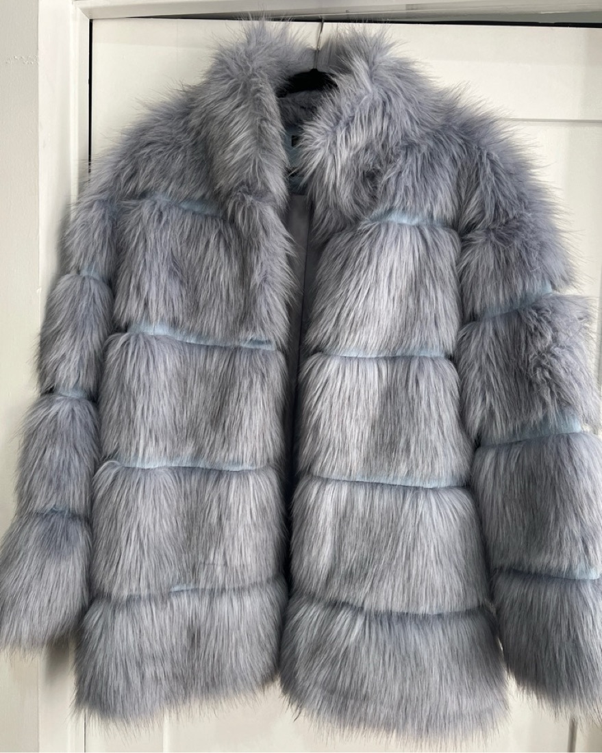 Blue pelted faux fur high collar coat! Oversized fit because it is a size 8
