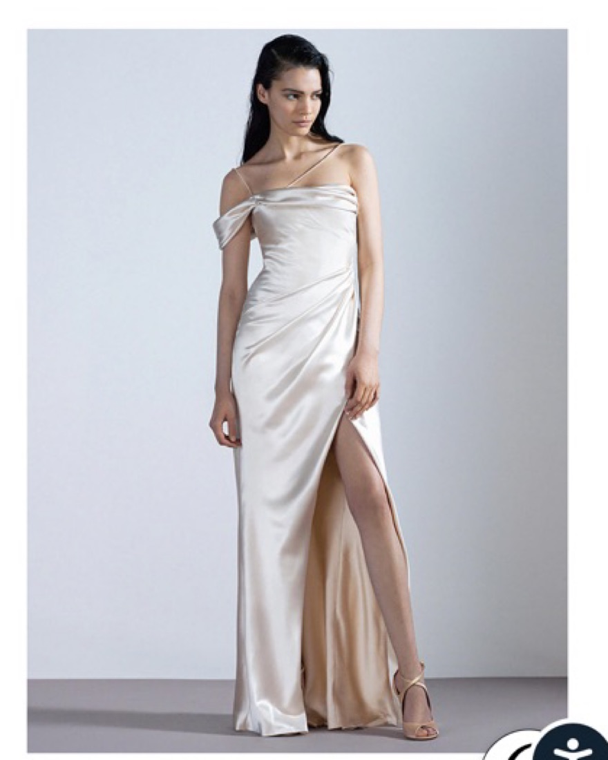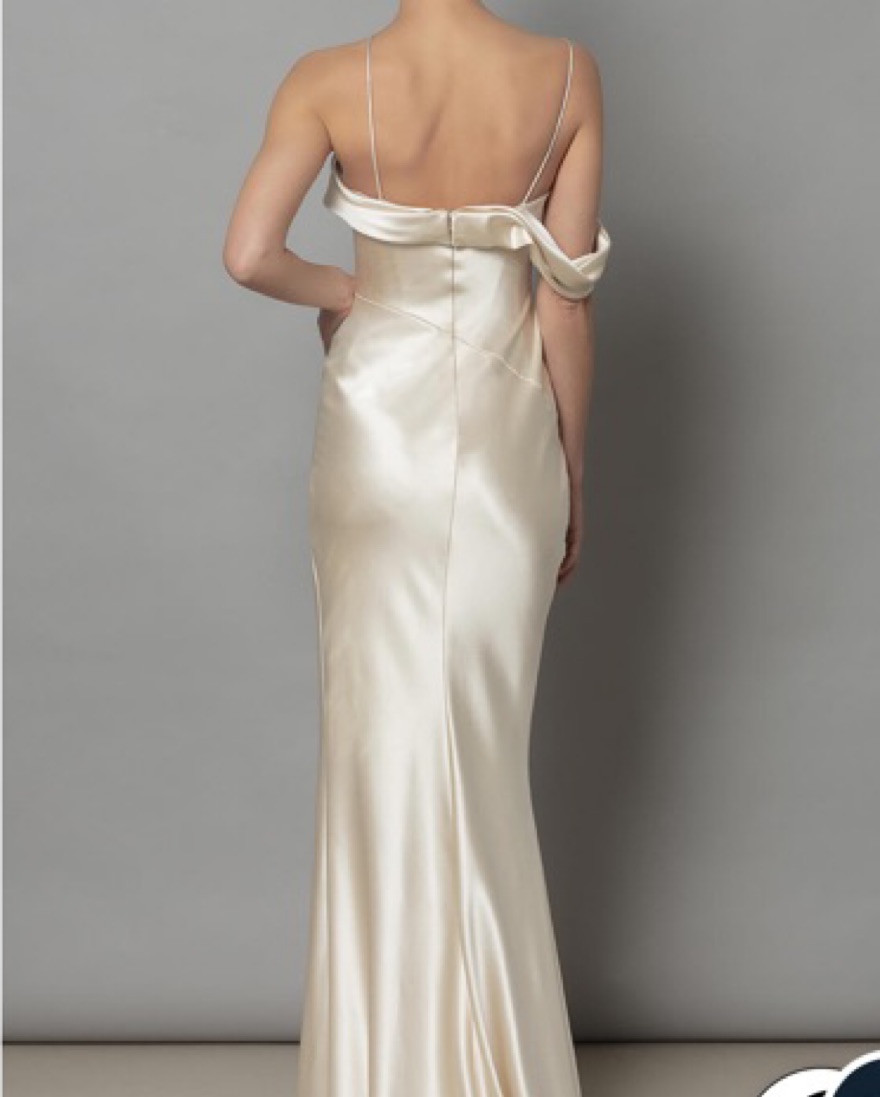 Worn one time for my wedding reception. The dress features a flattering shawl neckline and asymmetric strap, with a diagonal front split skirt. Size 0. Retail of dress is 2750 but i lowered it to allow for shipping!