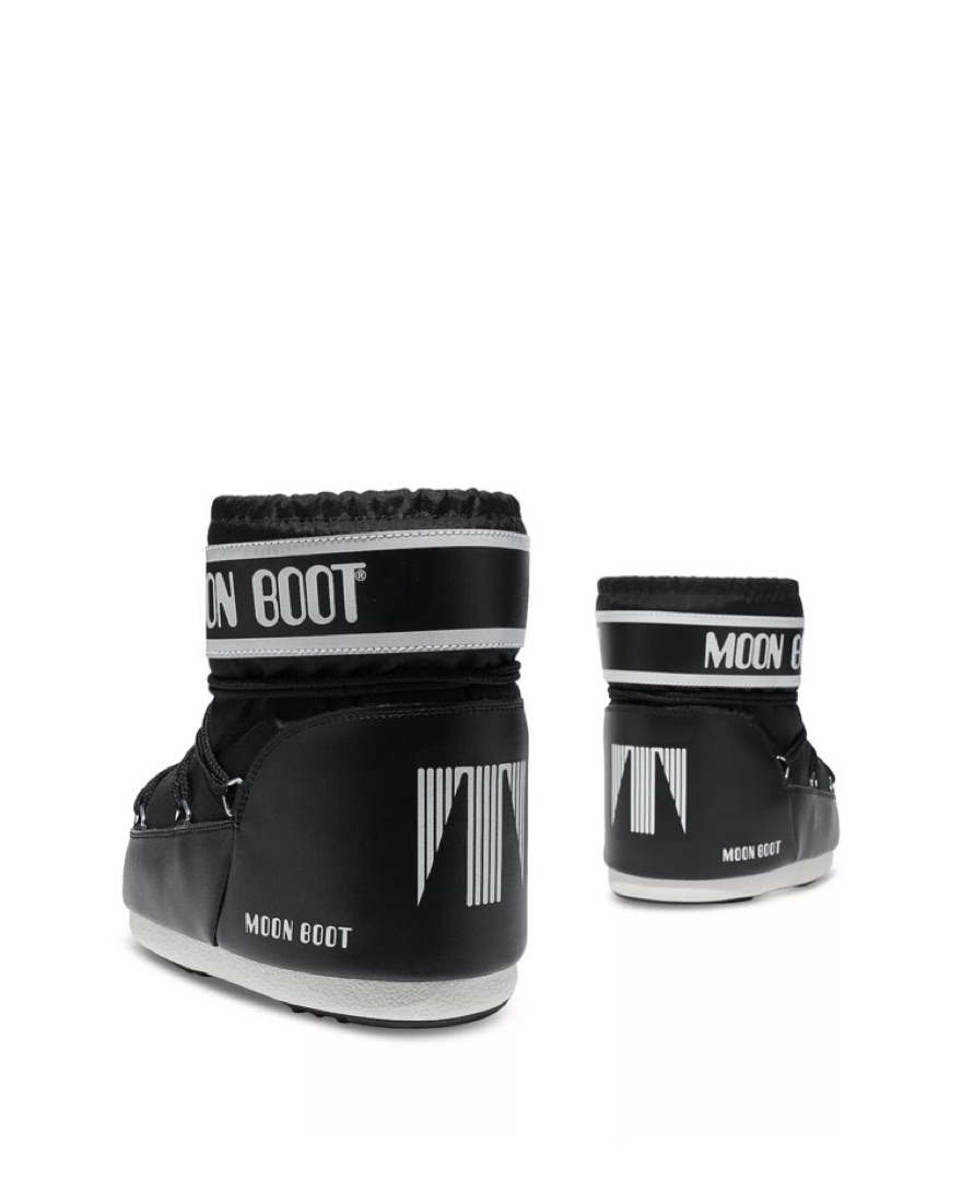 “Icon low black nylon boots” Moon Boot Classic Short - size 7! Bicolor black & white lace up. So cute and comfy!! Can fit sizes 6.5-7.5