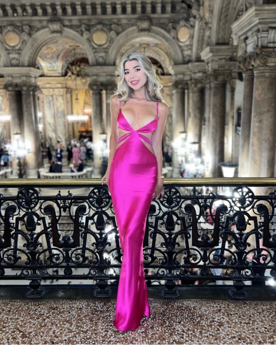 Retrofete pink satin gown with cutouts. Received so many compliments on this gown.