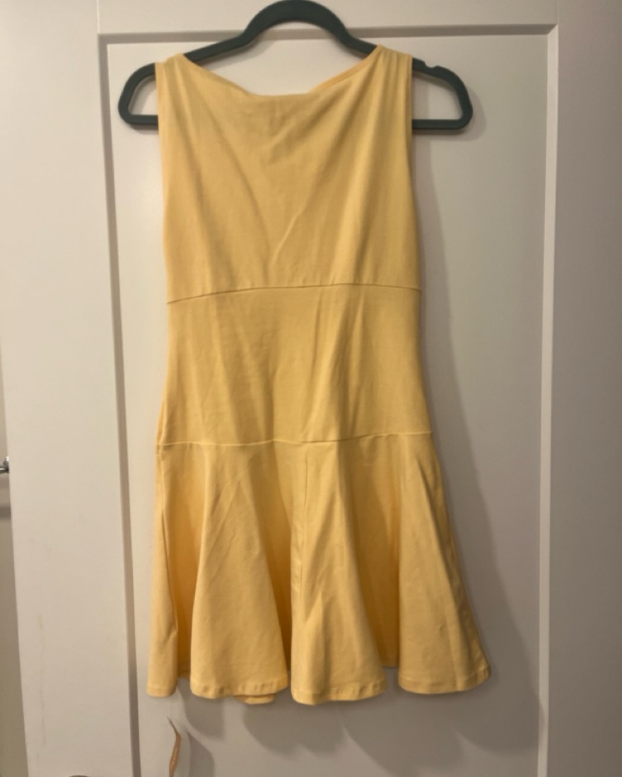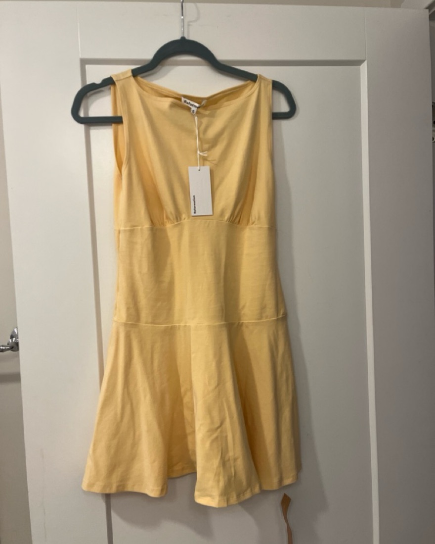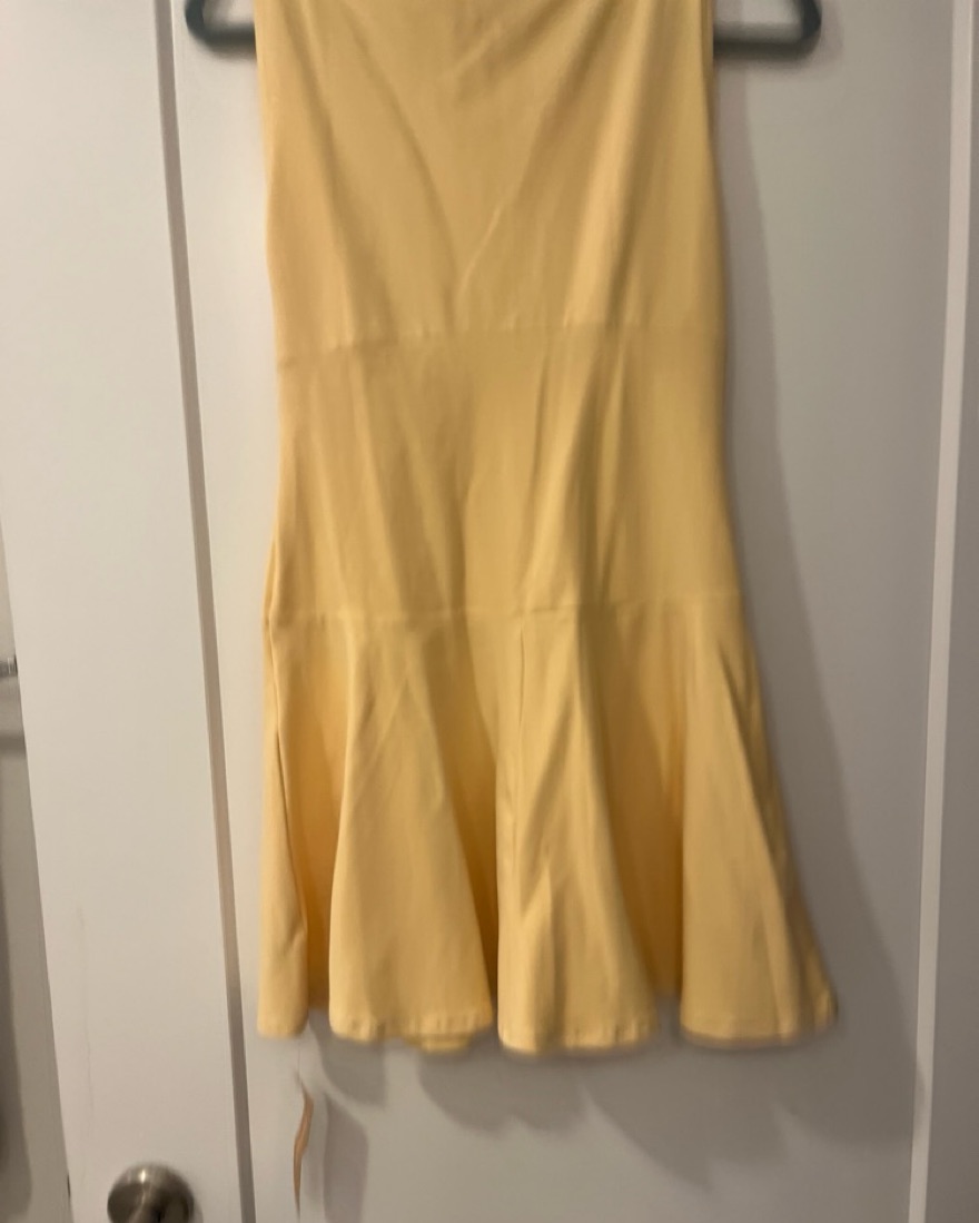 New with tags. This chic knit dress is perfect for a special occasion. Its vibrant yellow color and flattering silhouette will make you stand out in style.